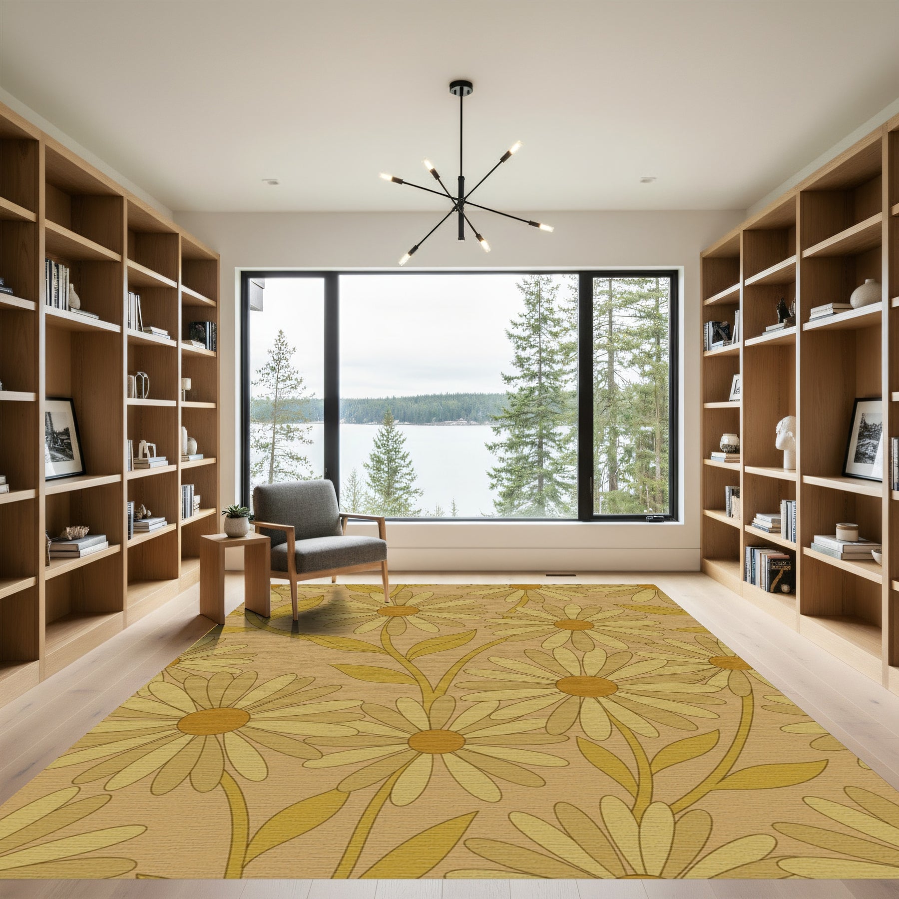 Flatwoven High Traffic Area Rug, Retro Golden Daisy Meadow Rug, Non Slip, Stain Resistant, Washable Area Rugs for Living Room, Bedroom Overview: