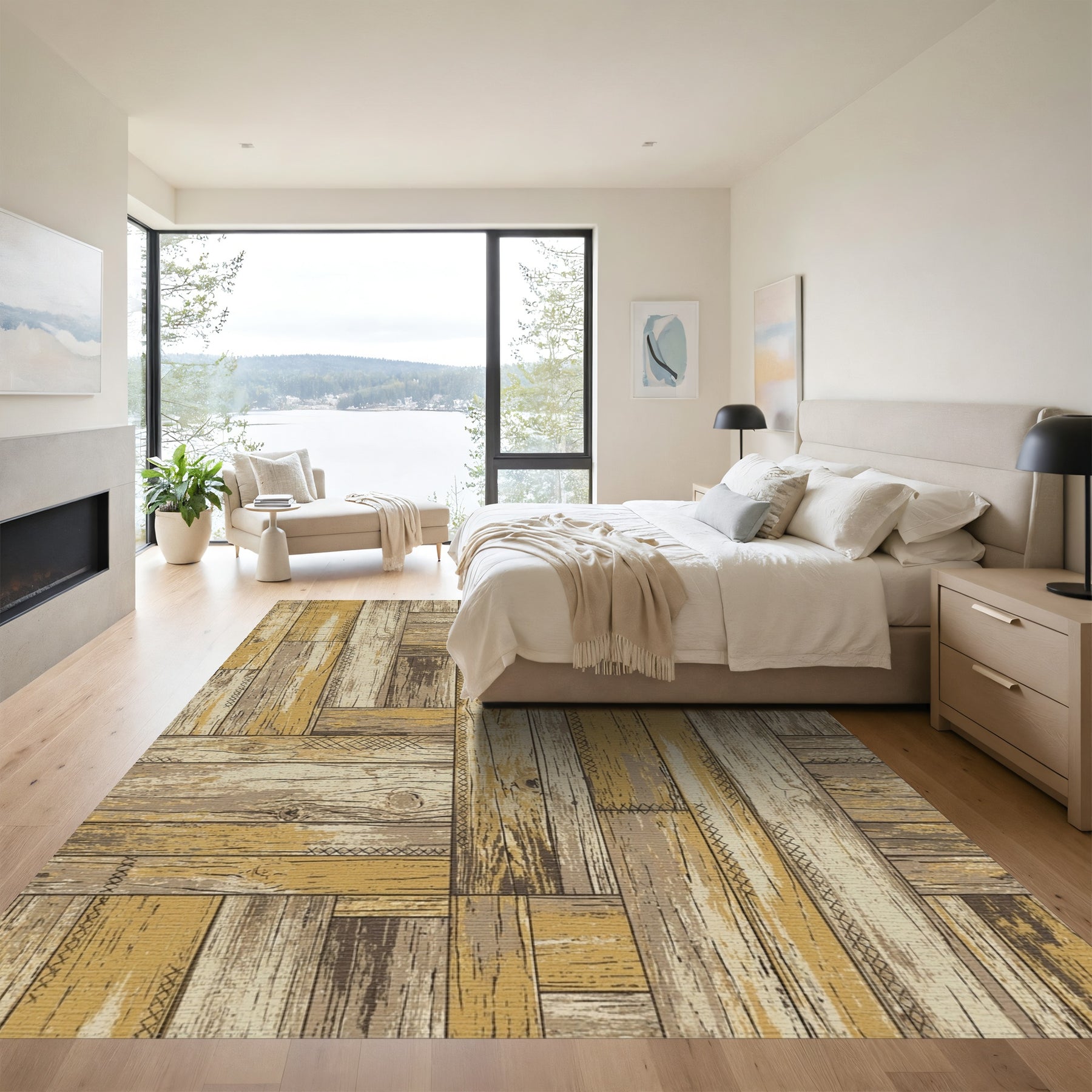 • Modern, artistic: Add a piece of modern charm to your bedroom collection. Designed with the art of minimalism, this rug is sure to provide your bedroom with coziness.