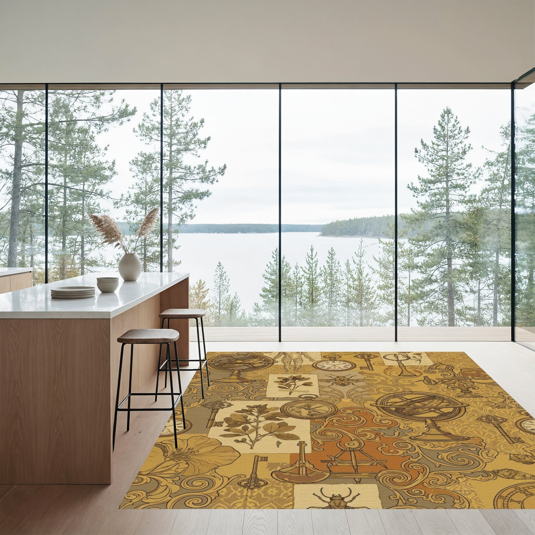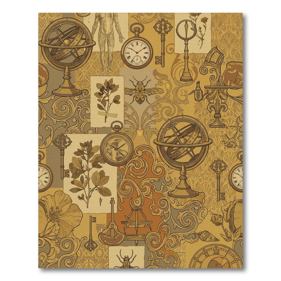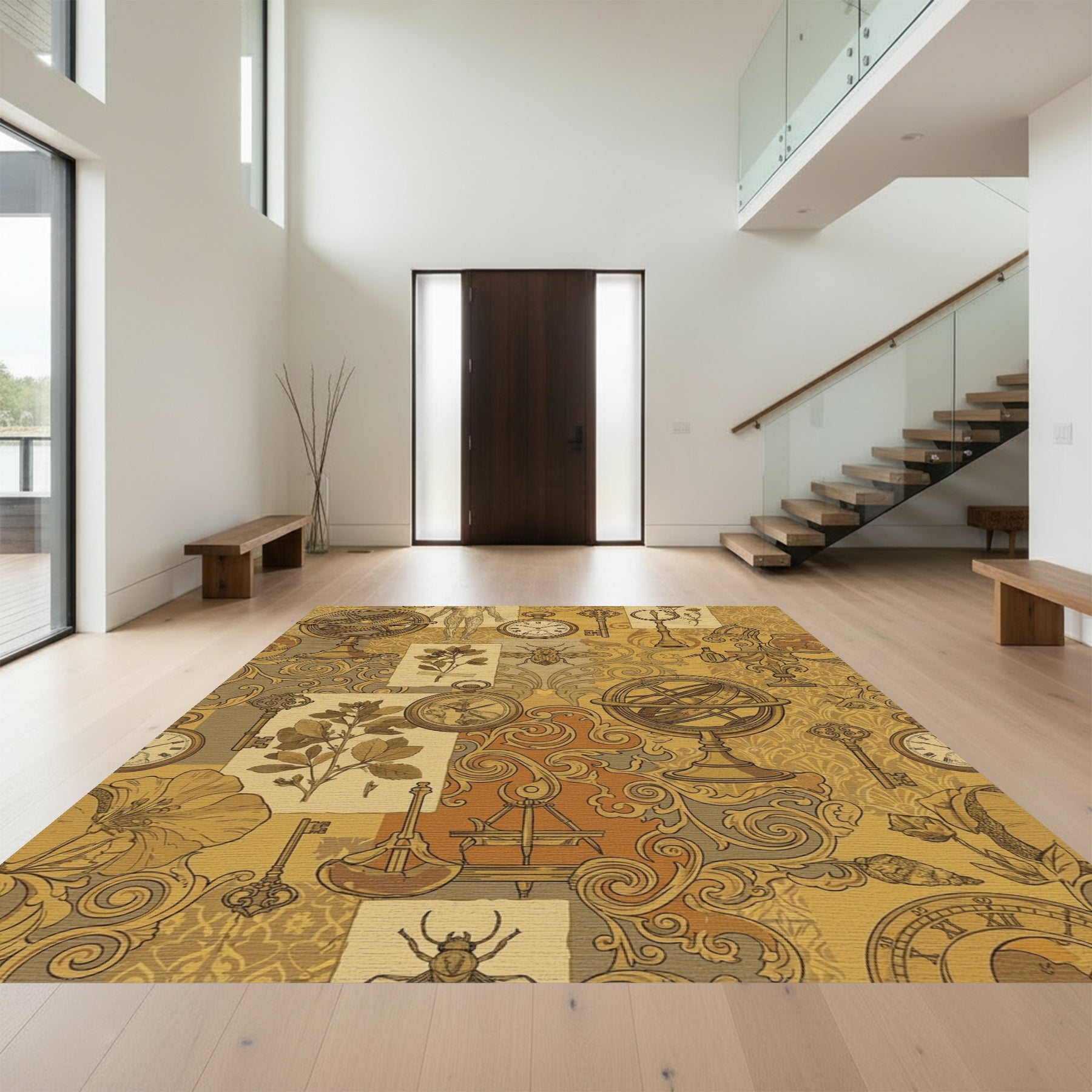 Flatwoven High Traffic Area Rug, Vintage Sepia Botanical Assemblage Rug, Non Slip, Stain Resistant, Washable Area Rugs for Living Room, Bedroom Overview: