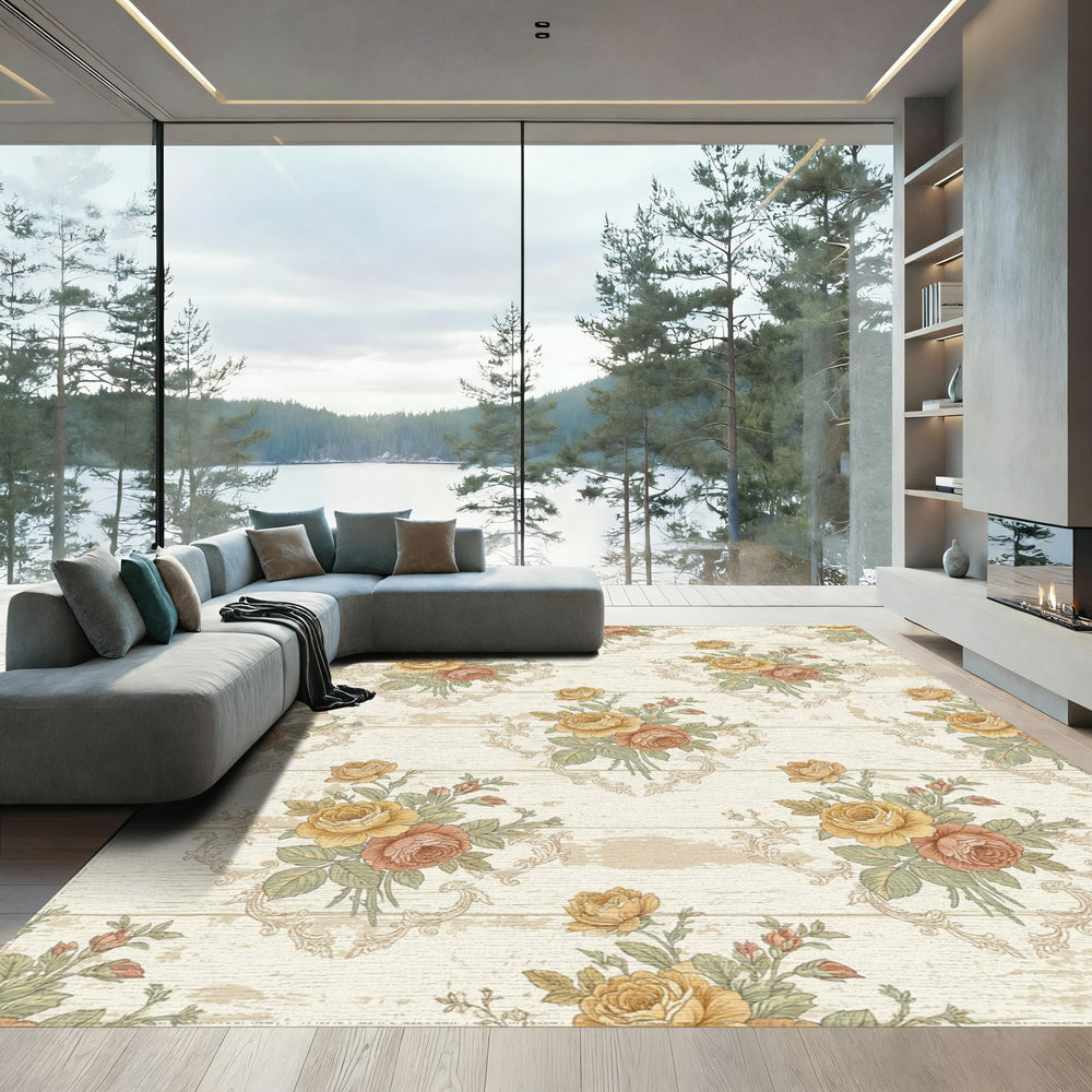 Golden Ochre Floral Scroll Vine Rug