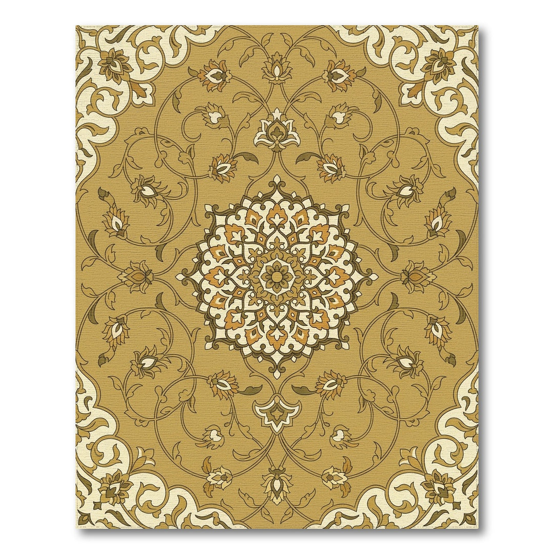 Golden Damask Floral Medallion Rug