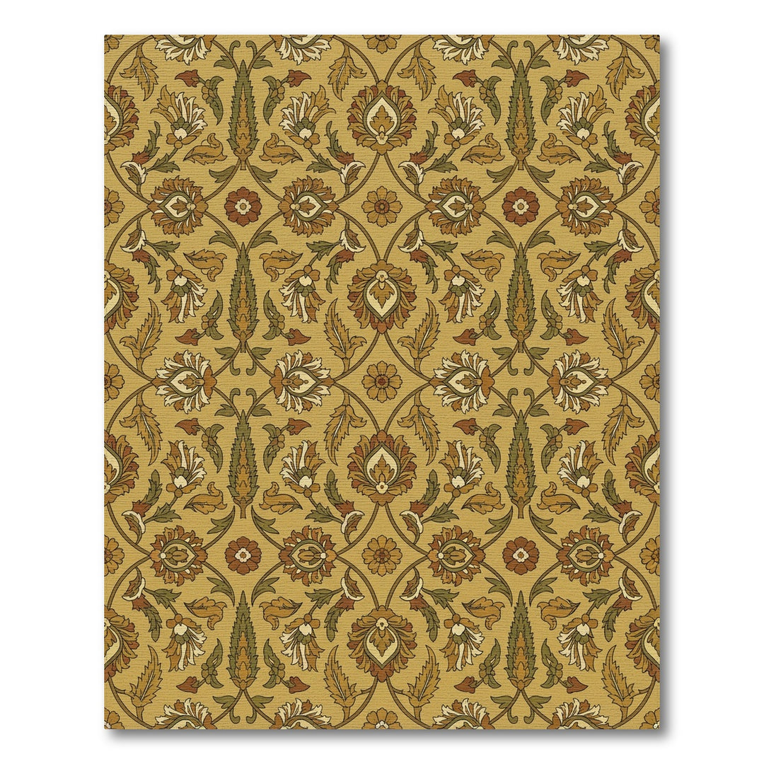 Golden Ochre Arabesque Lattice Rug