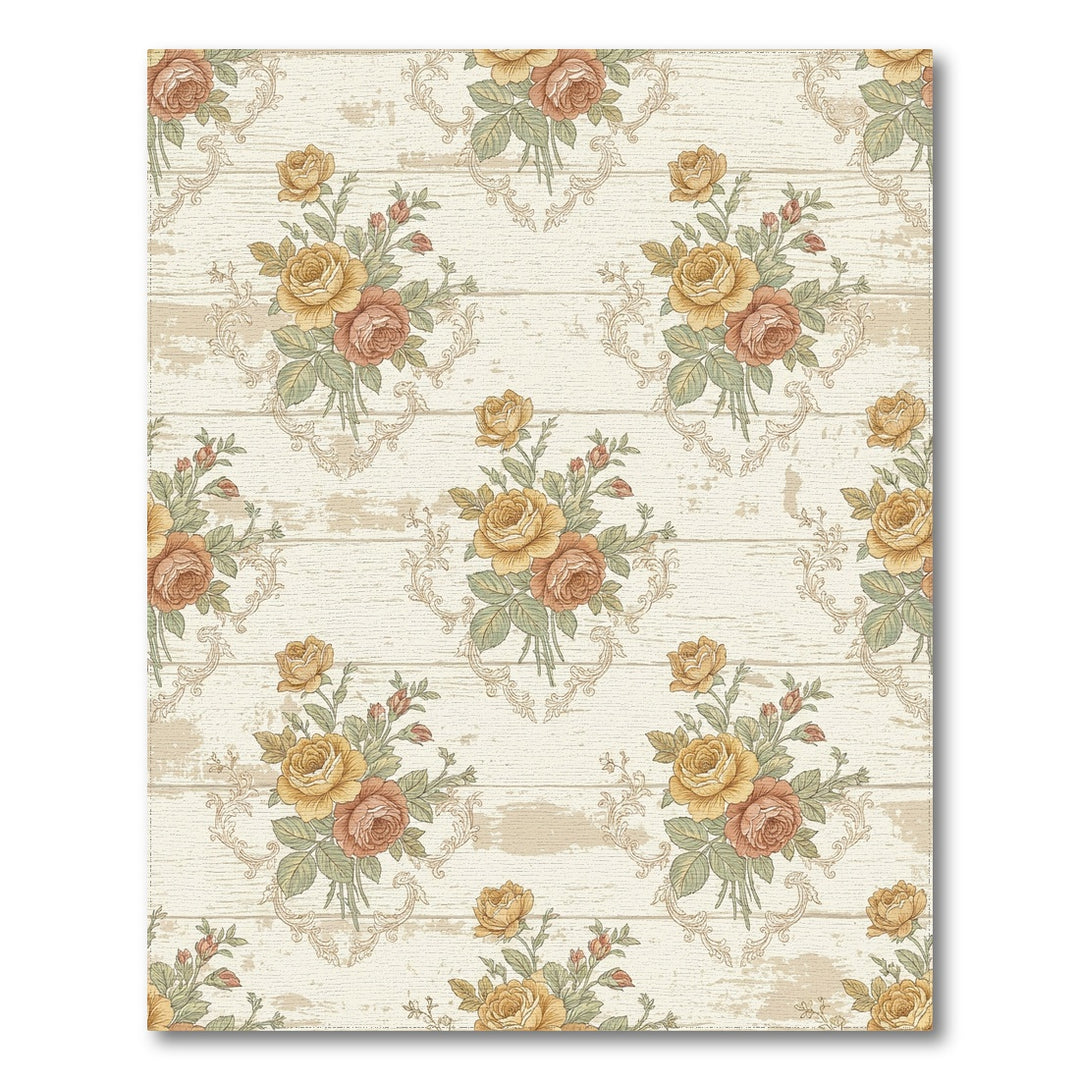 Golden Vintage Floral Damask Rug