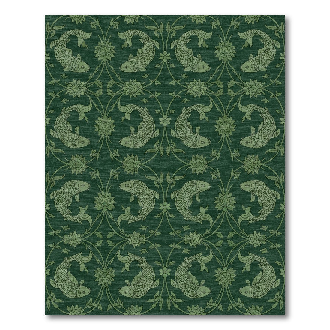 Flatwoven High Traffic Area Rug, Deep Green Koi Fish Floral Swirl Rug, Non Slip, Stain Resistant, Washable Area Rugs for Living Room, Bedroom Overview: