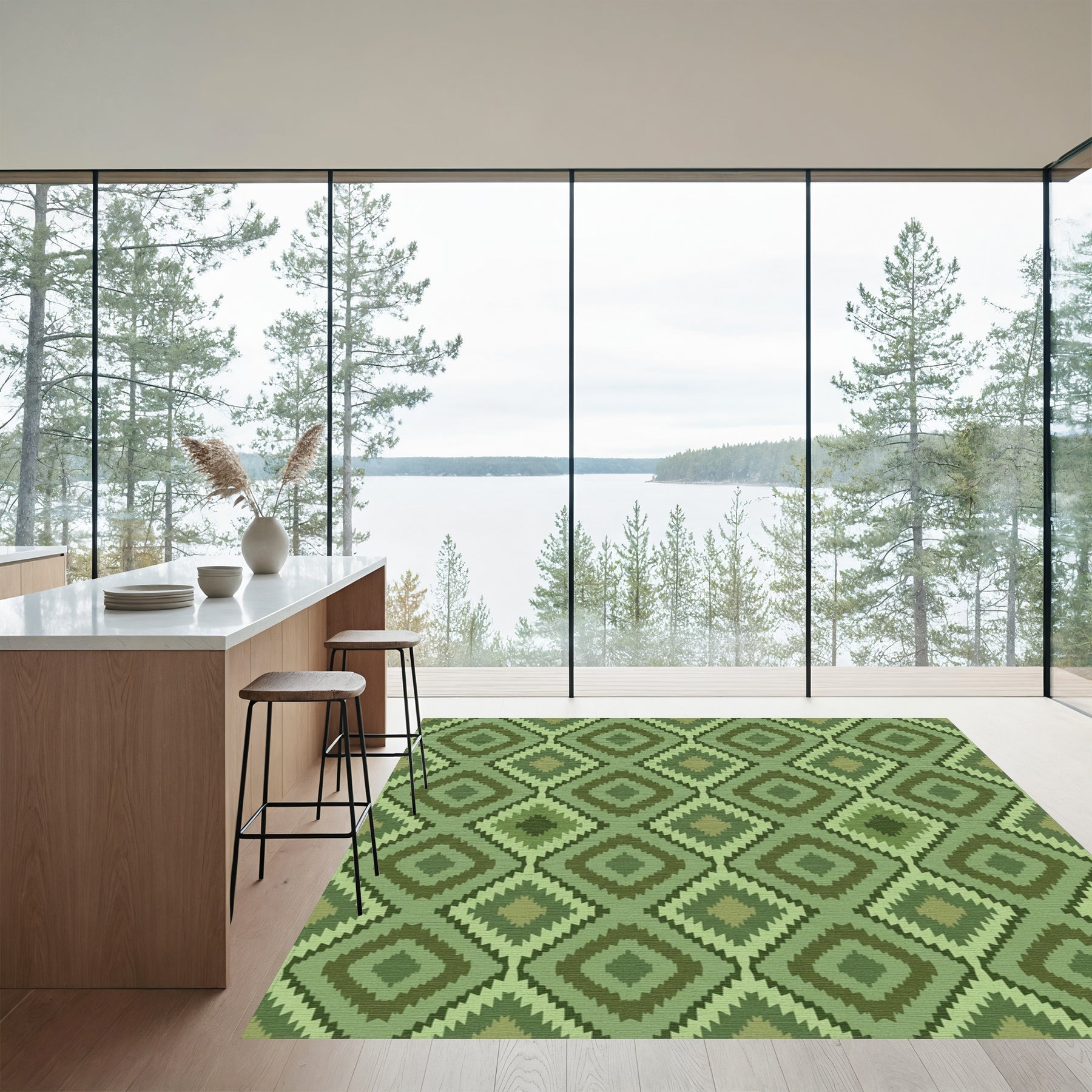 Flatwoven High Traffic Area Rug, Earthy Green Diamond Gradient Rug, Non Slip, Stain Resistant, Washable Area Rugs for Living Room, Bedroom Overview: