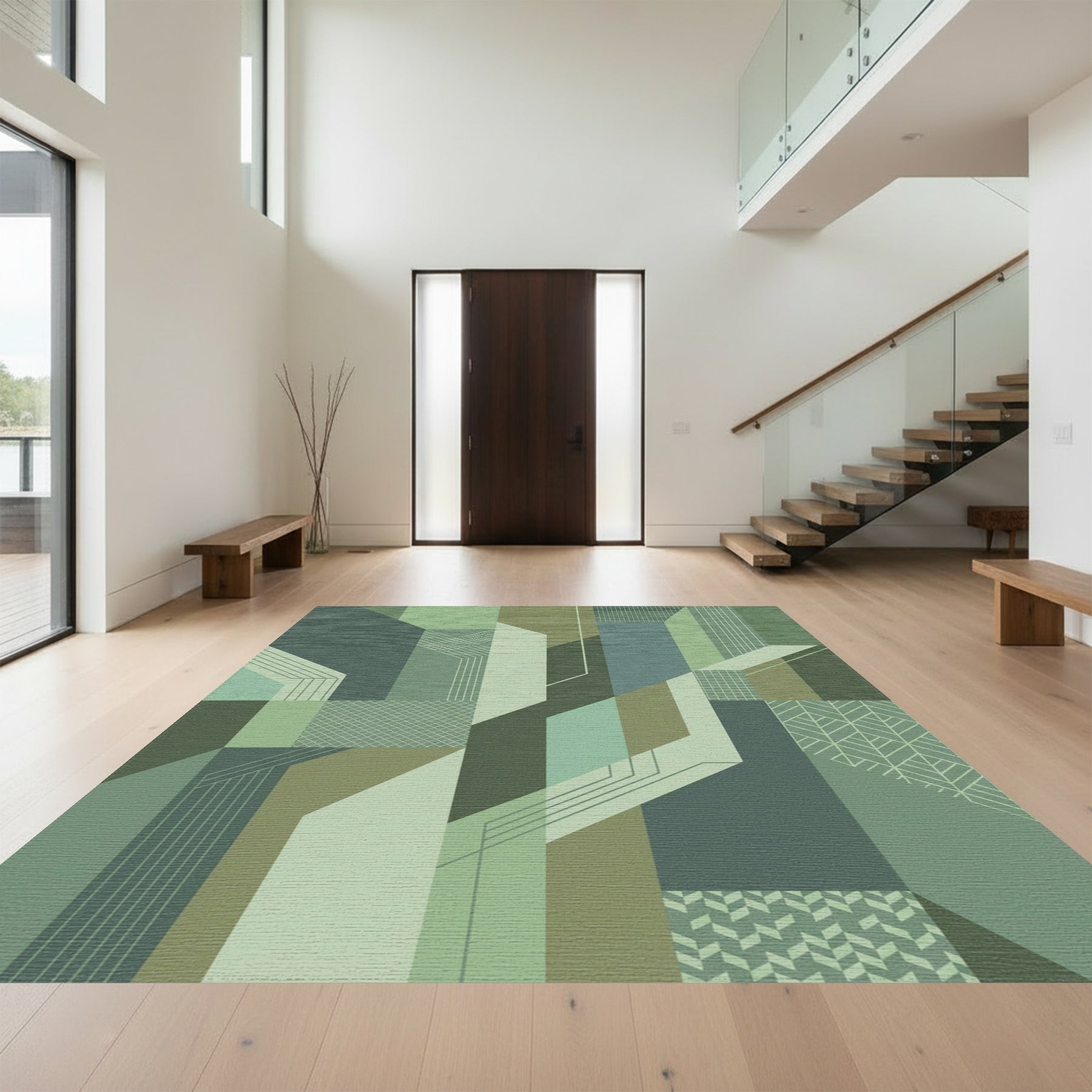 Forest Green Geometric Architectural Elements Rug