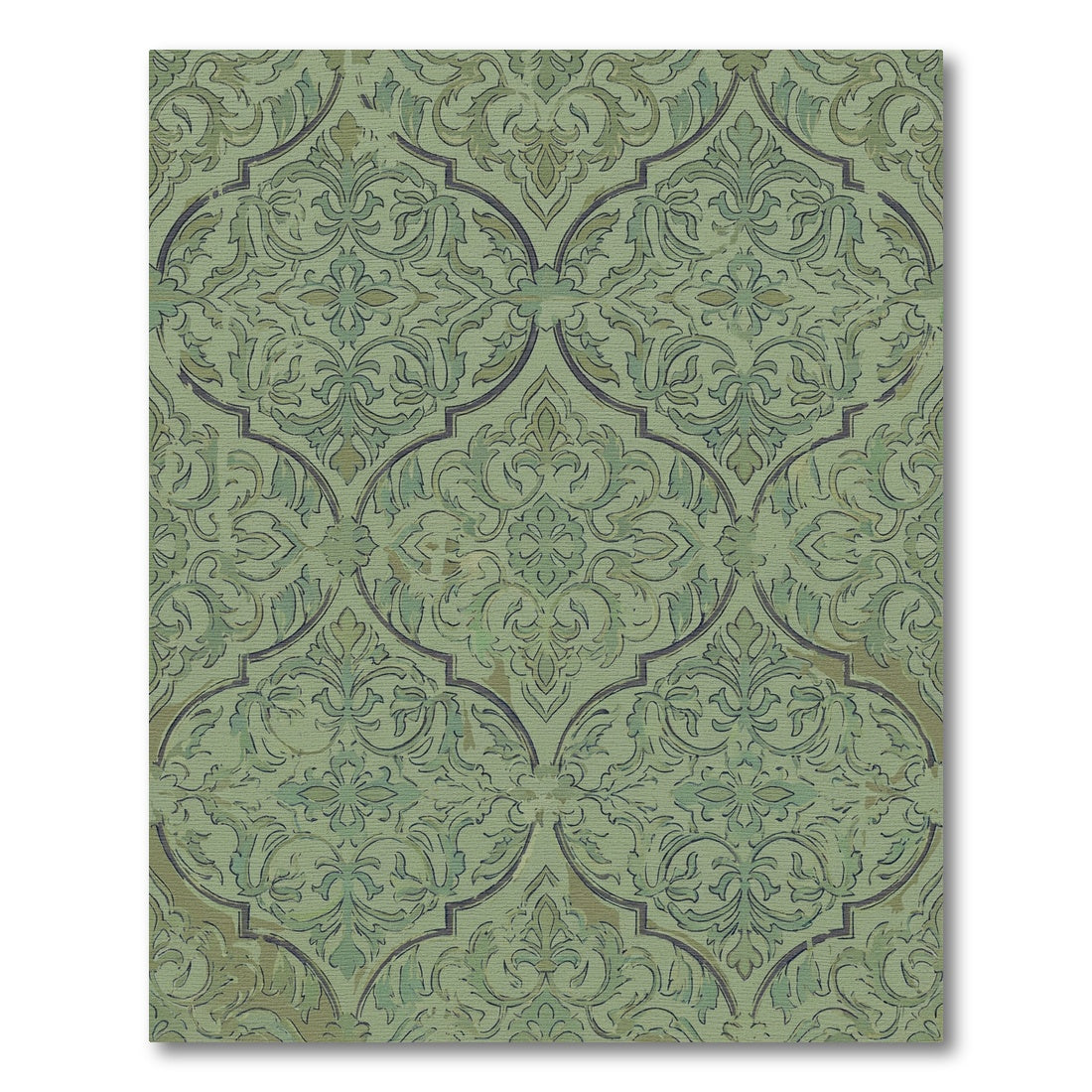 Pale Green Damask Traditional Overlay Rug