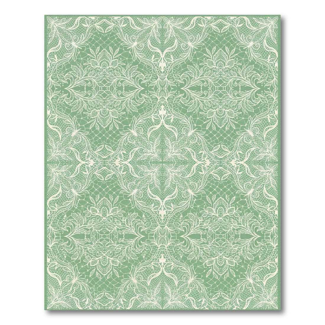 Flatwoven High Traffic Area Rug, Pale Green Lace Floral Medallion Rug, Non Slip, Stain Resistant, Washable Area Rugs for Living Room, Bedroom Overview: