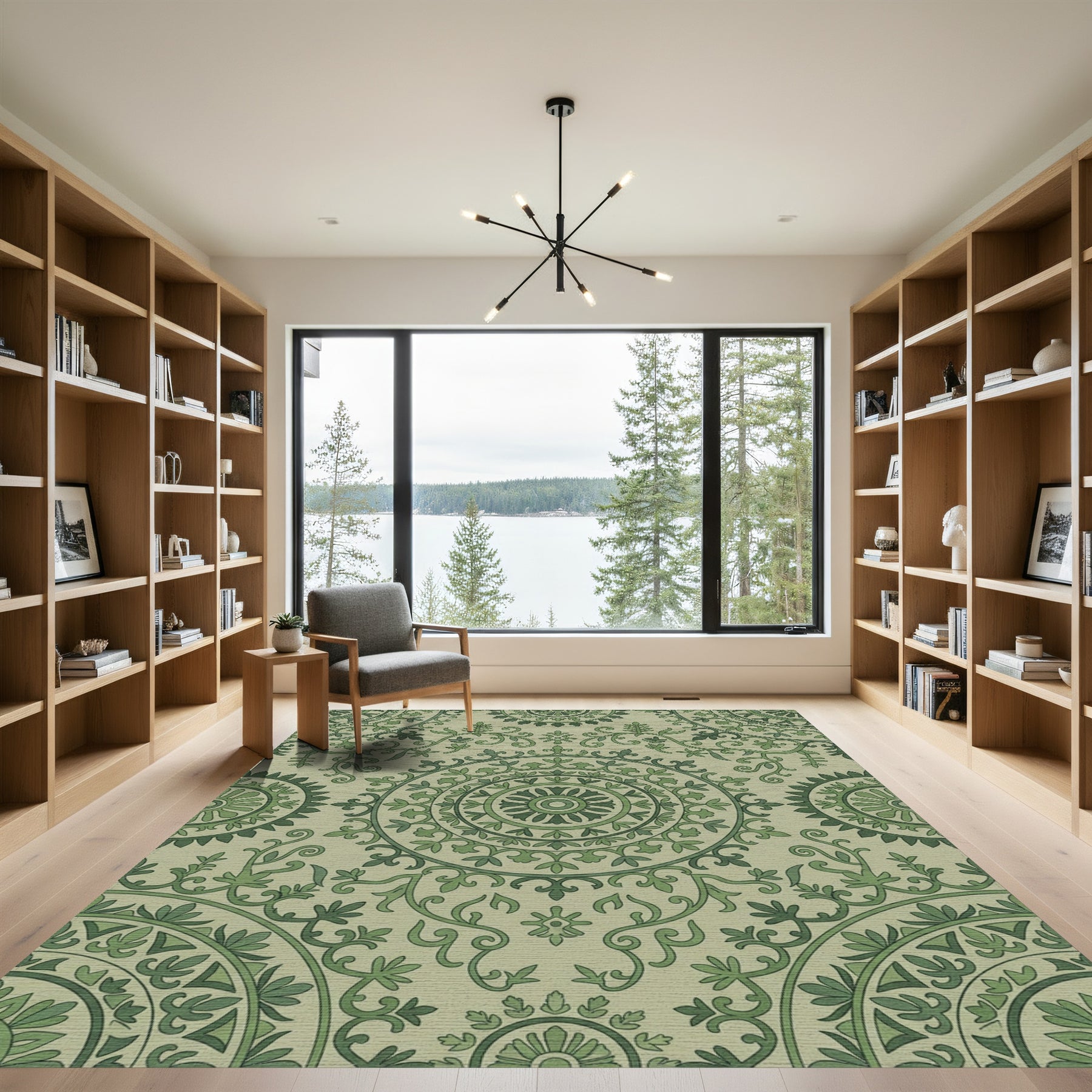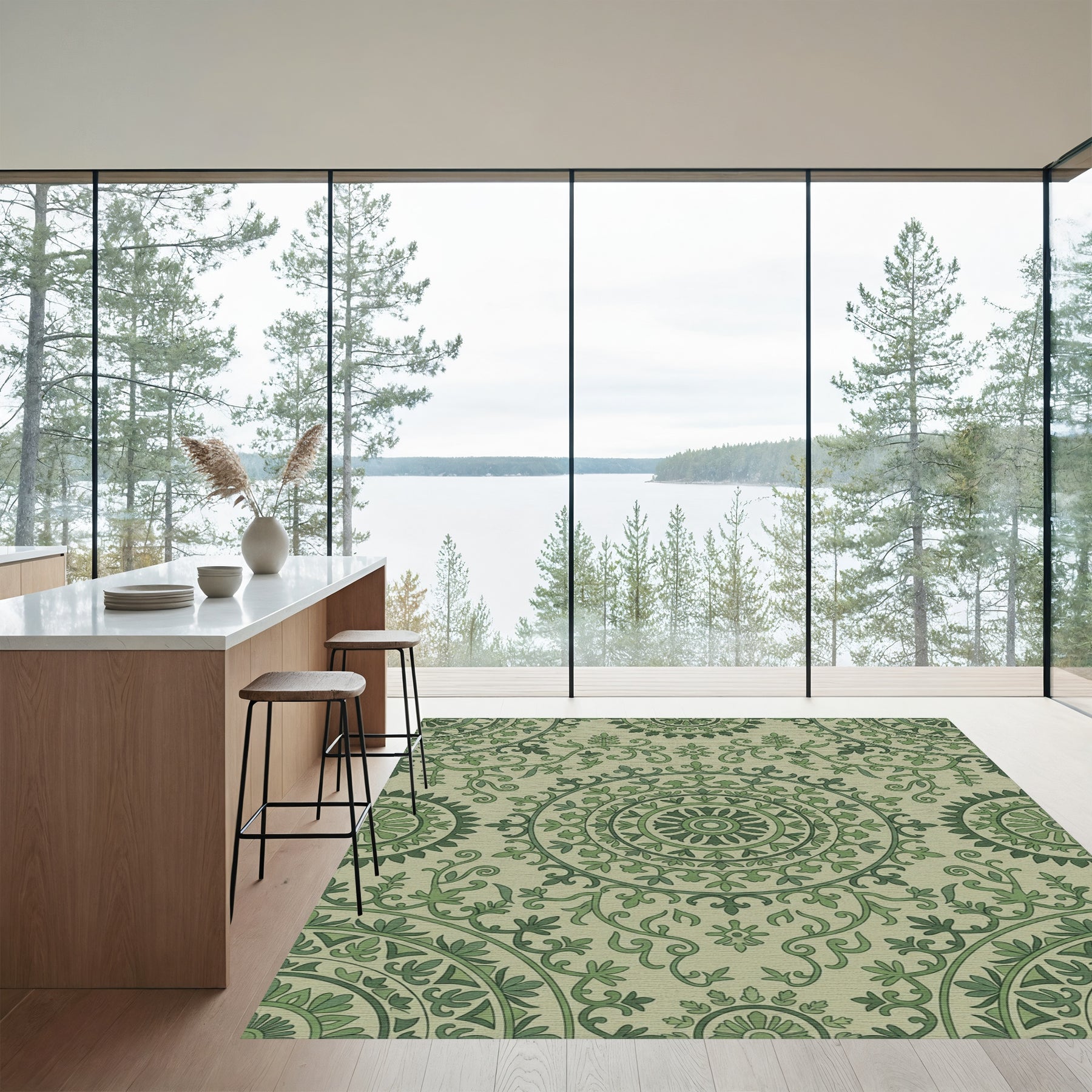 Flatwoven High Traffic Area Rug, Sage Green Medallion Floral Vines Rug, Non Slip, Stain Resistant, Washable Area Rugs for Living Room, Bedroom Overview: