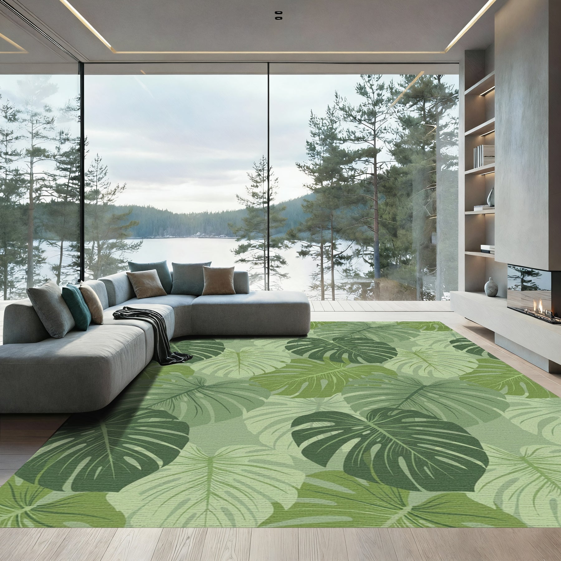 Flatwoven High Traffic Area Rug, Verdant Green Tropical Leaf Arrangement Rug, Non Slip, Stain Resistant, Washable Area Rugs for Living Room, Bedroom Overview: