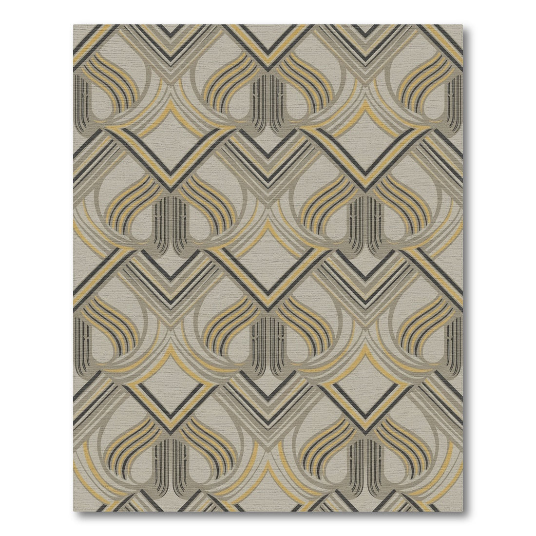 Flatwoven High Traffic Area Rug, Art Deco Gray Yellow Geometric Arch Rug, Non Slip, Stain Resistant, Washable Area Rugs for Living Room, Bedroom Overview: