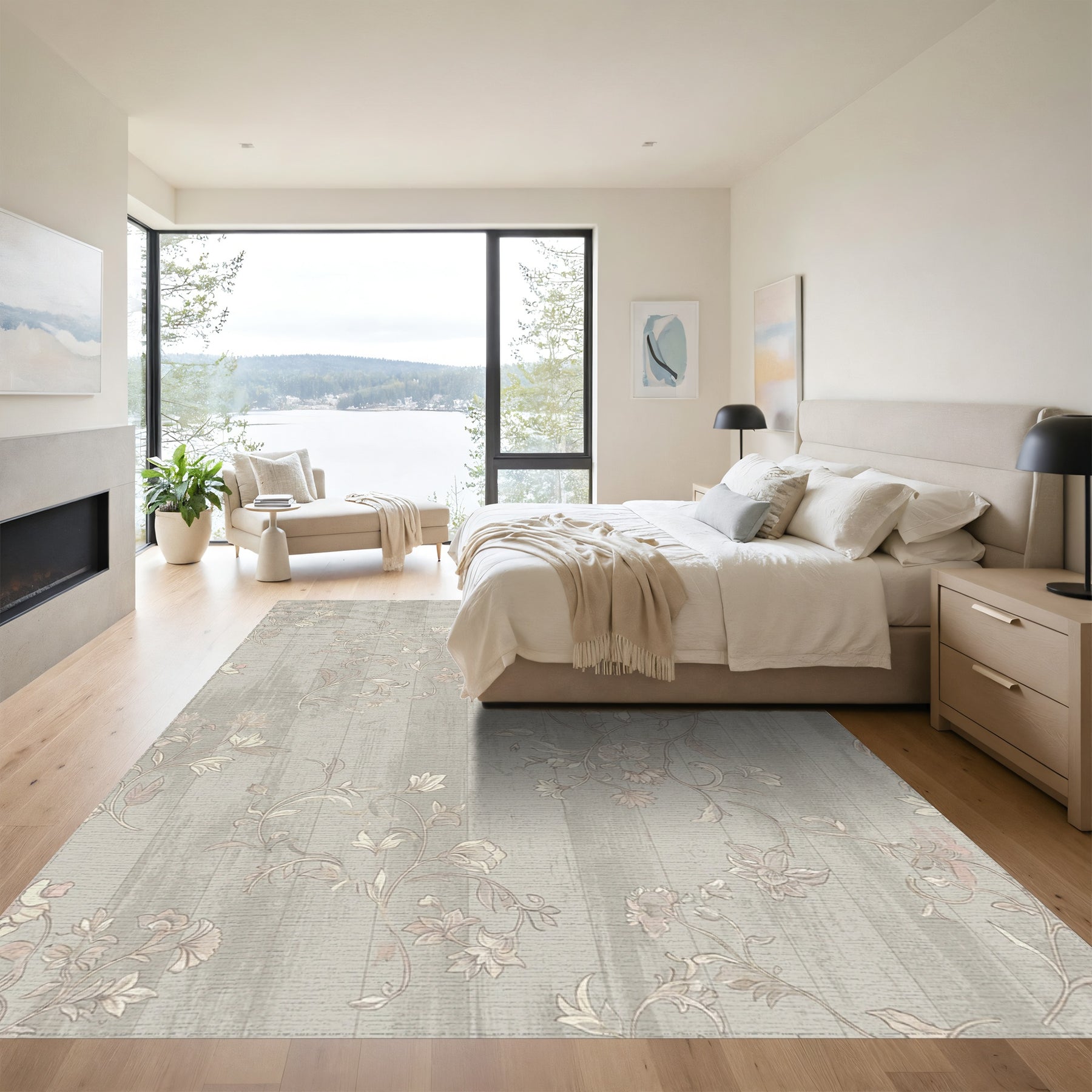 Flatwoven High Traffic Area Rug, Muted Beige Floral Vine Wood Grain Rug, Non Slip, Stain Resistant, Washable Area Rugs for Living Room, Bedroom Overview: