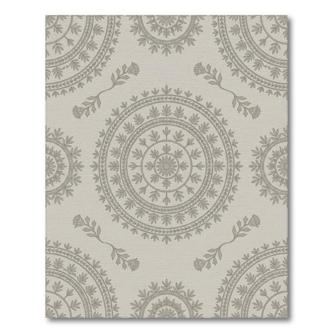 Flatwoven High Traffic Area Rug, Neutral Grey Circular Floral Medallion Rug, Non Slip, Stain Resistant, Washable Area Rugs for Living Room, Bedroom Overview: