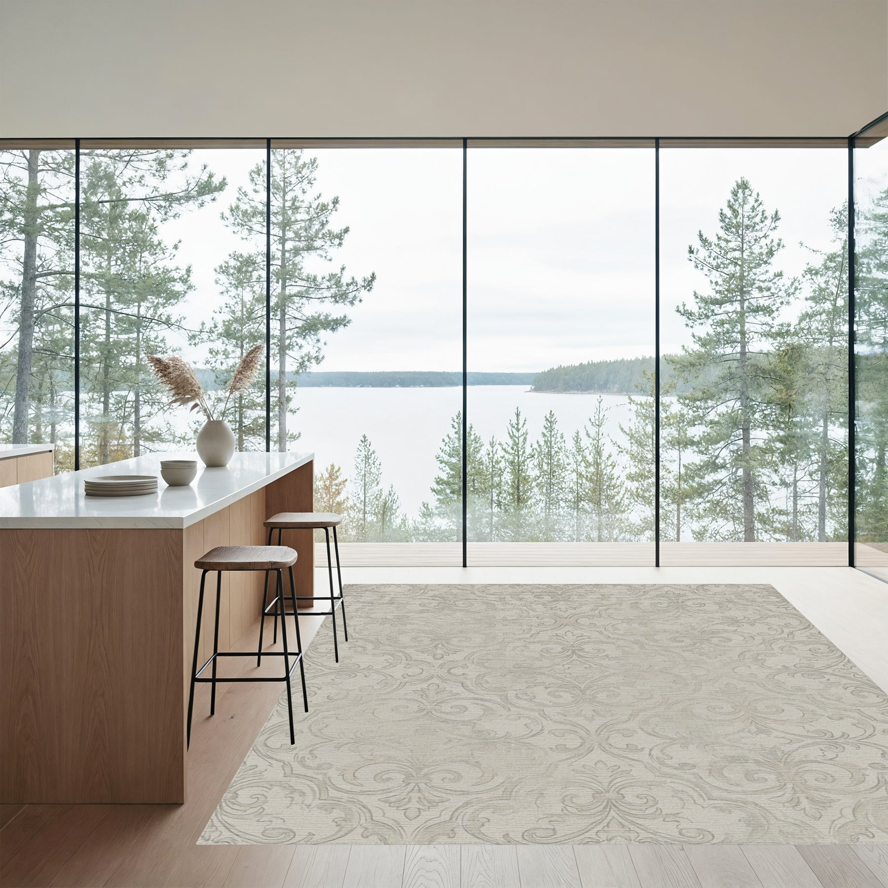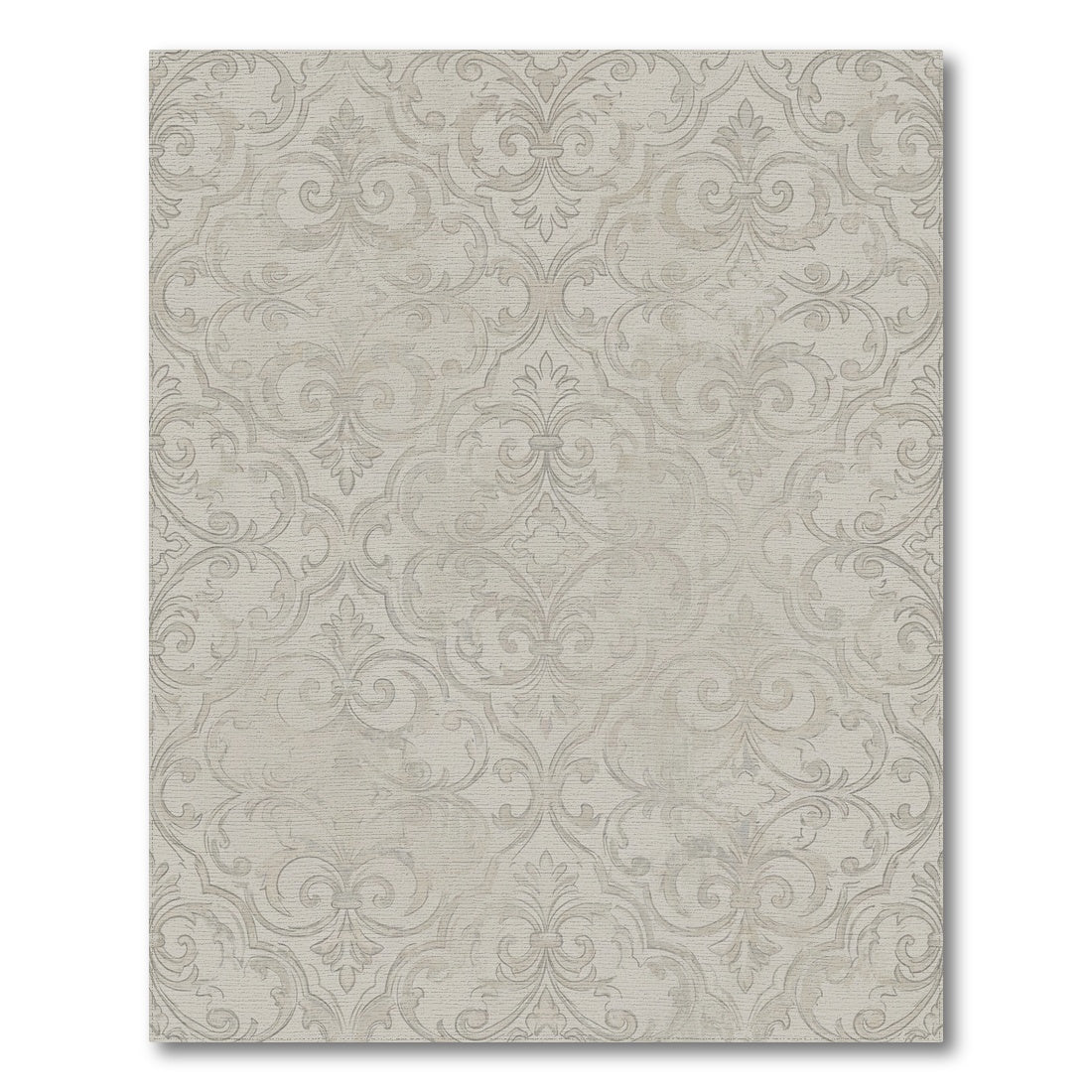 Flatwoven High Traffic Area Rug, Vintage Cream Damask Scroll Rug, Non Slip, Stain Resistant, Washable Area Rugs for Living Room, Bedroom Overview: