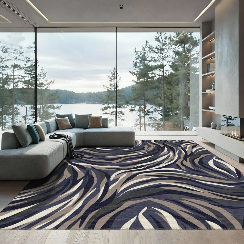 Midnight Blue Pumpkin Autumn Leaves Rug