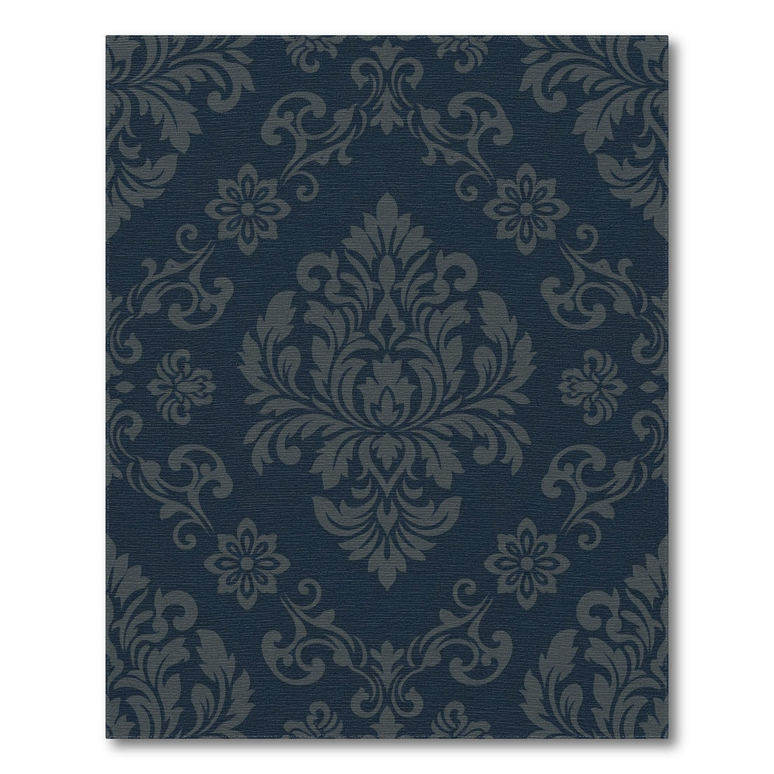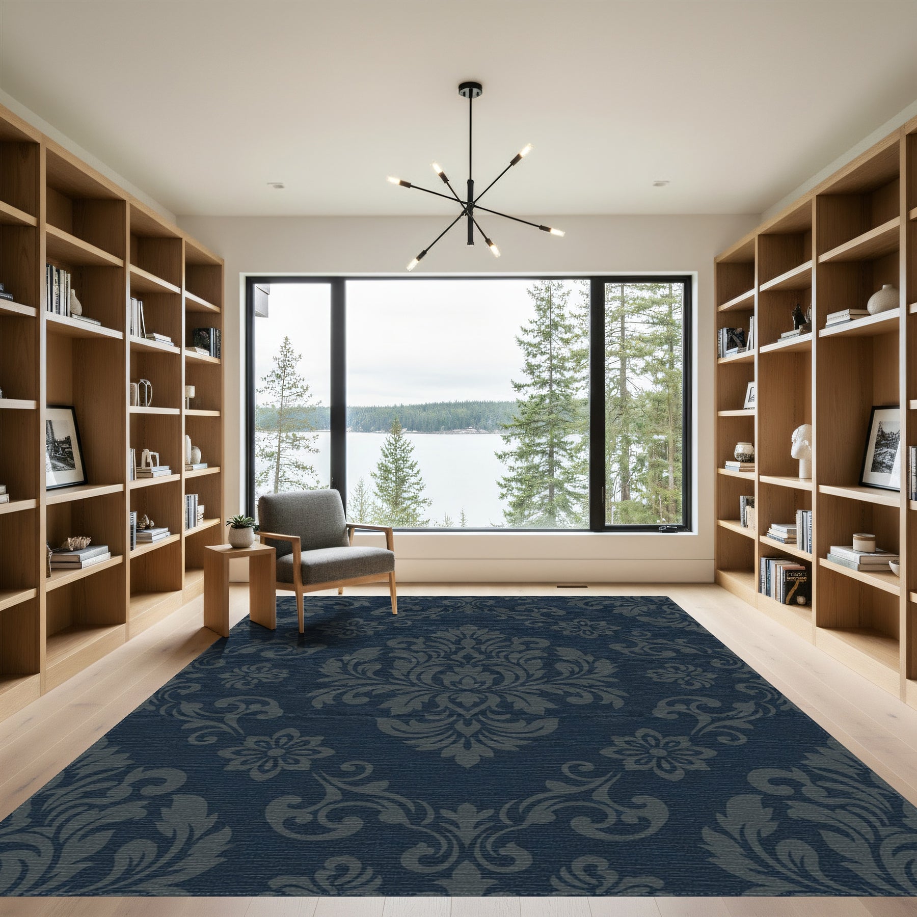 Flatwoven High Traffic Area Rug, Dark Blue Gray Damask Swirls Rug, Non Slip, Stain Resistant, Washable Area Rugs for Living Room, Bedroom Overview: