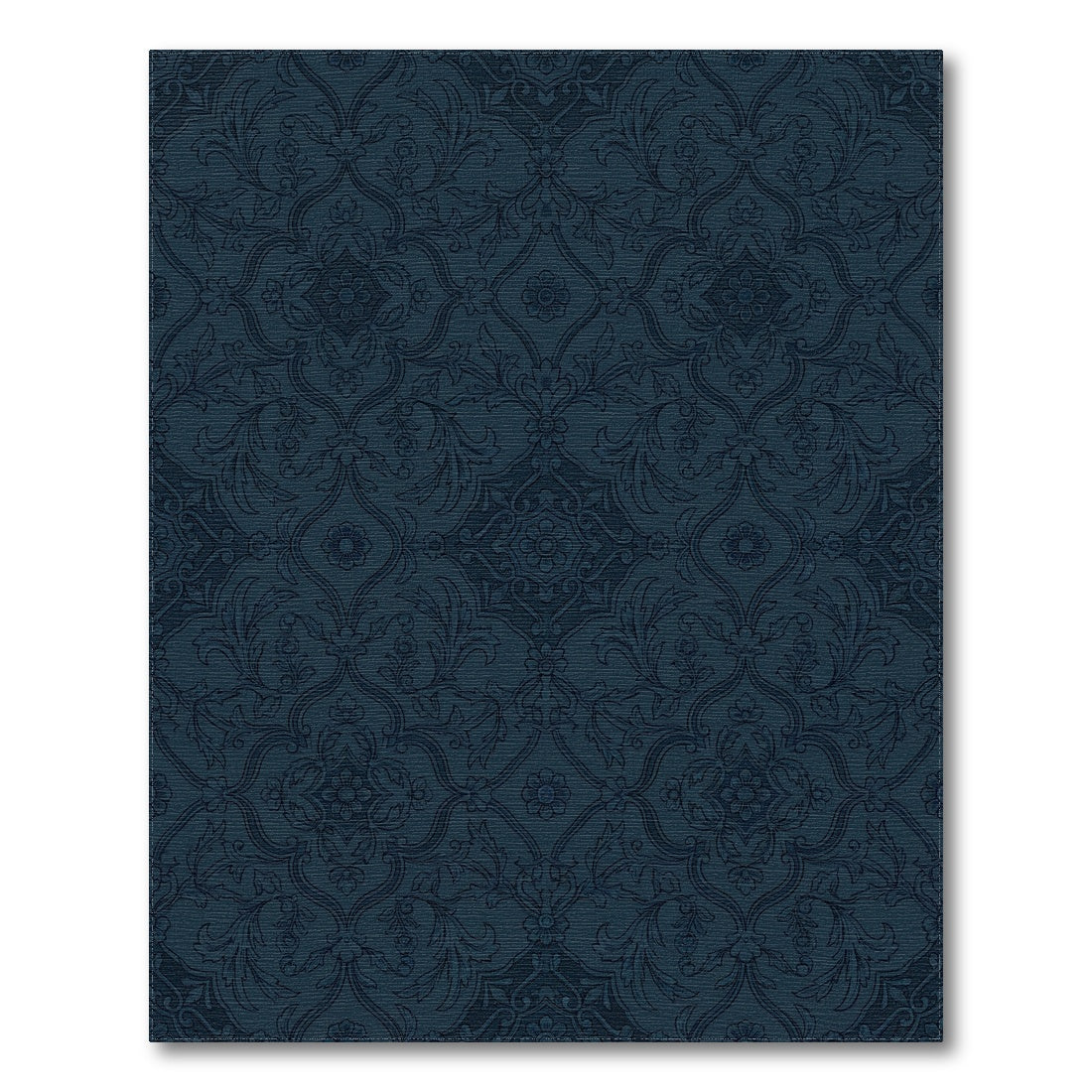 Deep Navy Damask Floral Medallion Rug