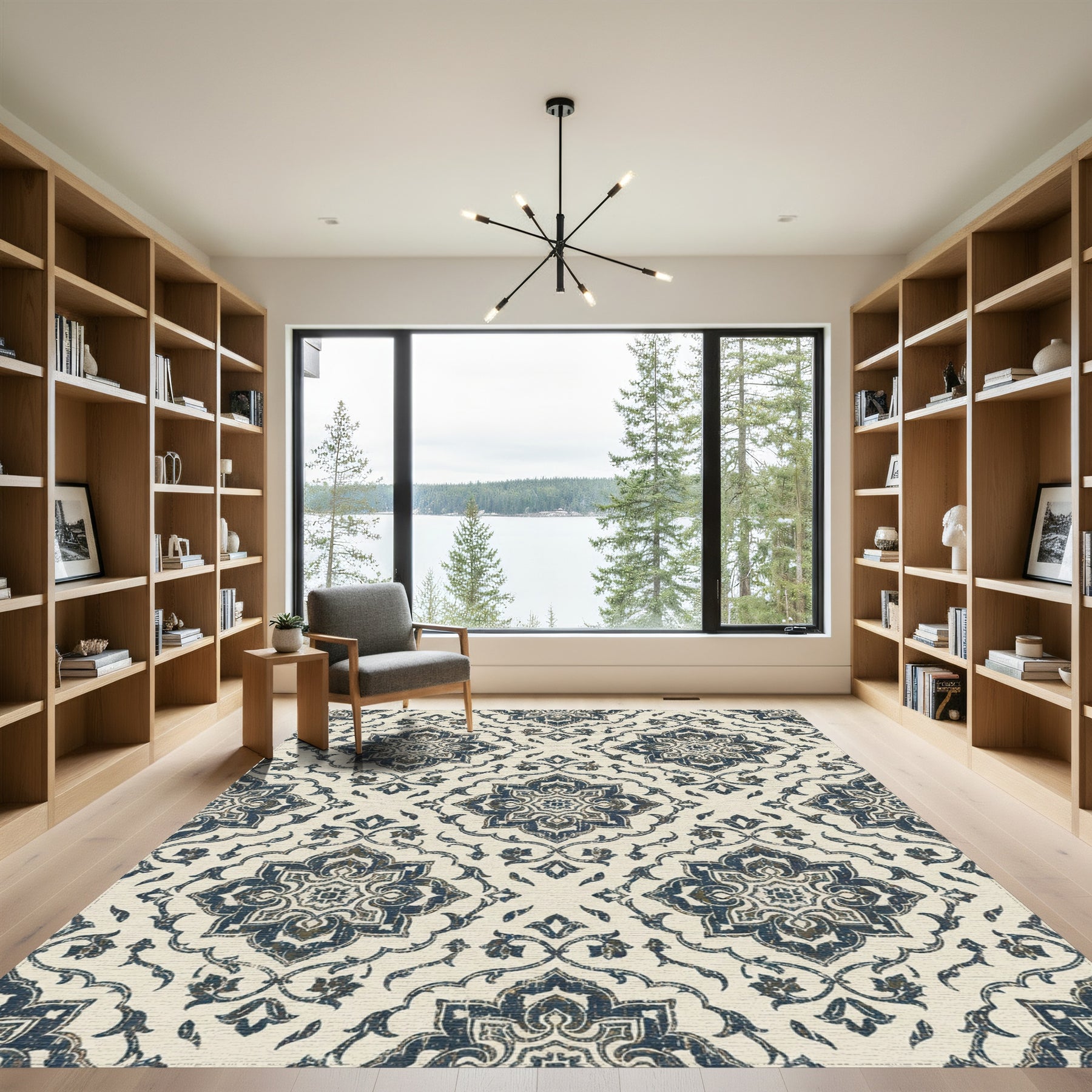 Flatwoven High Traffic Area Rug, Distressed Navy Damask Medallion Rug, Non Slip, Stain Resistant, Washable Area Rugs for Living Room, Bedroom Overview: