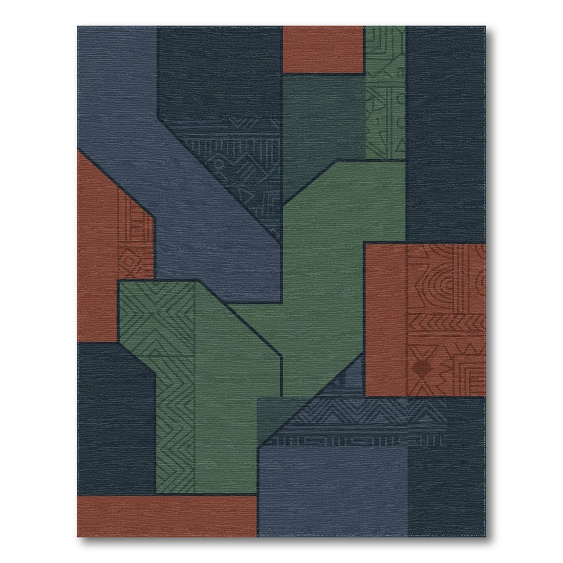 Flatwoven High Traffic Area Rug, Geo Terracotta Forest Geometric Collage Rug, Non Slip, Stain Resistant, Washable Area Rugs for Living Room, Bedroom Overview: