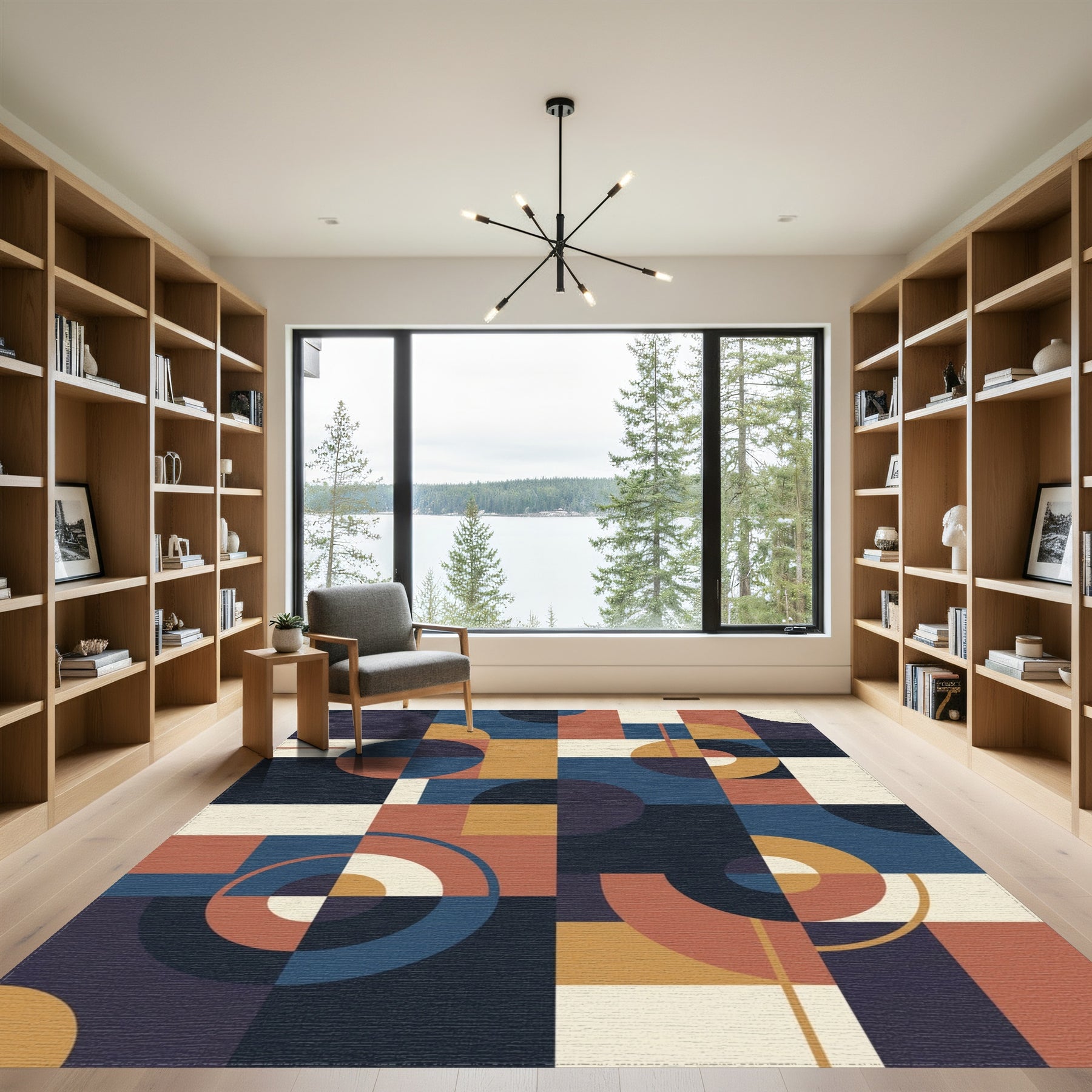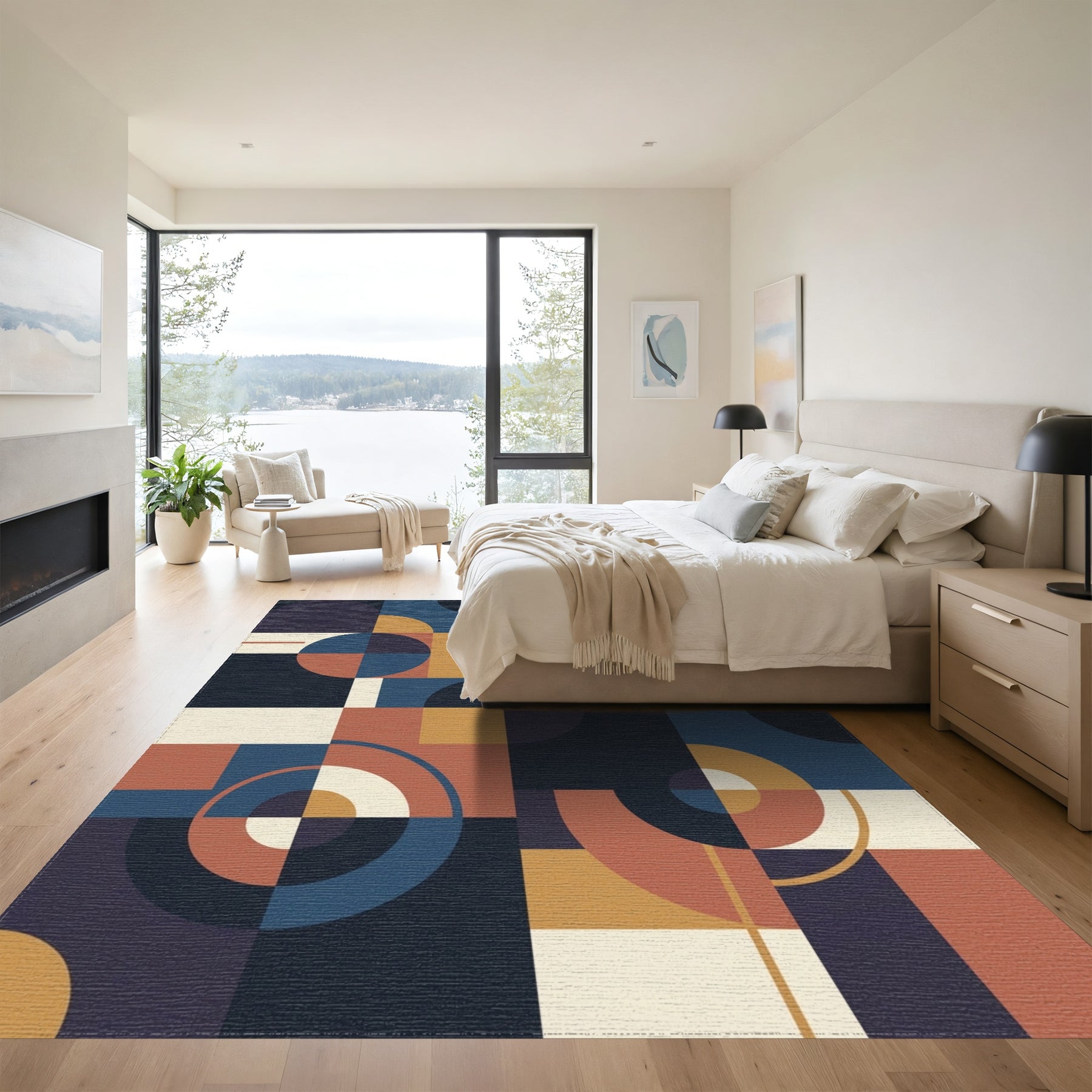 Flatwoven High Traffic Area Rug, Mid Century Modern Geometric Assemblage Rug, Non Slip, Stain Resistant, Washable Area Rugs for Living Room, Bedroom Overview: