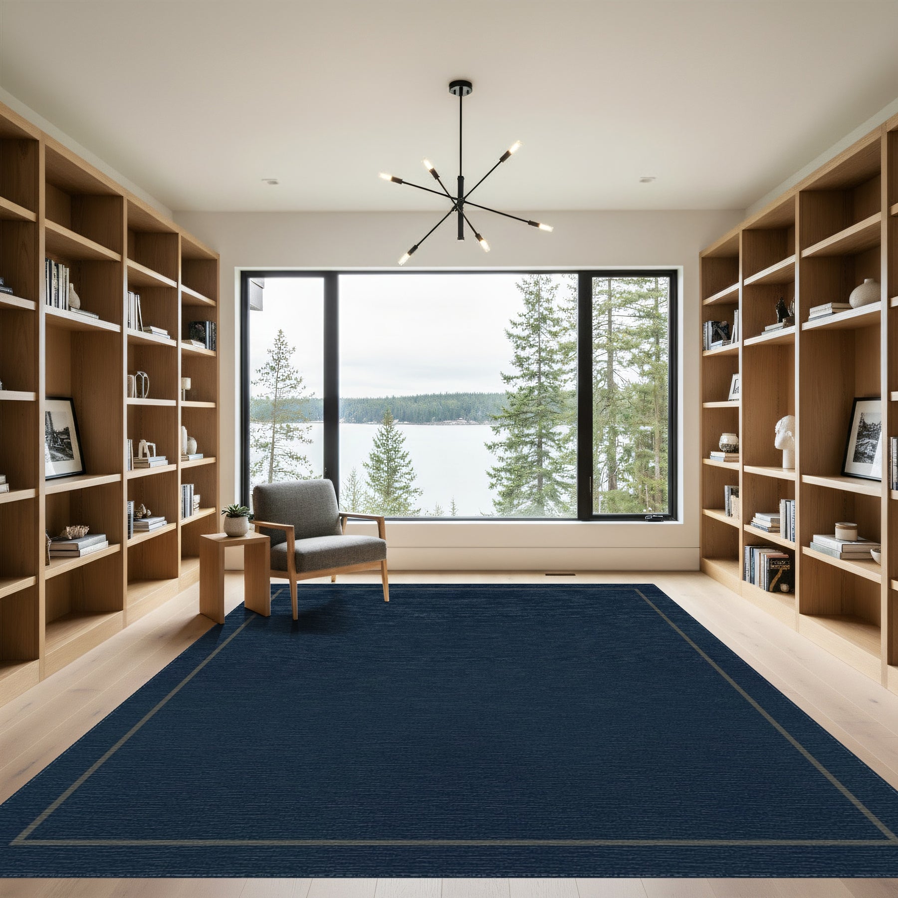 Flatwoven High Traffic Area Rug, Midnight Blue Geometric Inset Rug, Non Slip, Stain Resistant, Washable Area Rugs for Living Room, Bedroom Overview: