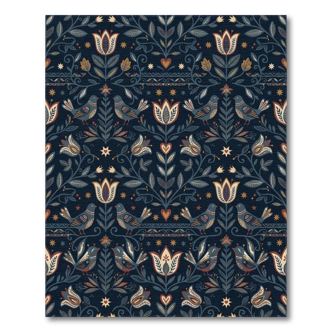 Flatwoven High Traffic Area Rug, Navajo Blue Folk Floral Bird Medallion Rug, Non Slip, Stain Resistant, Washable Area Rugs for Living Room, Bedroom Overview: