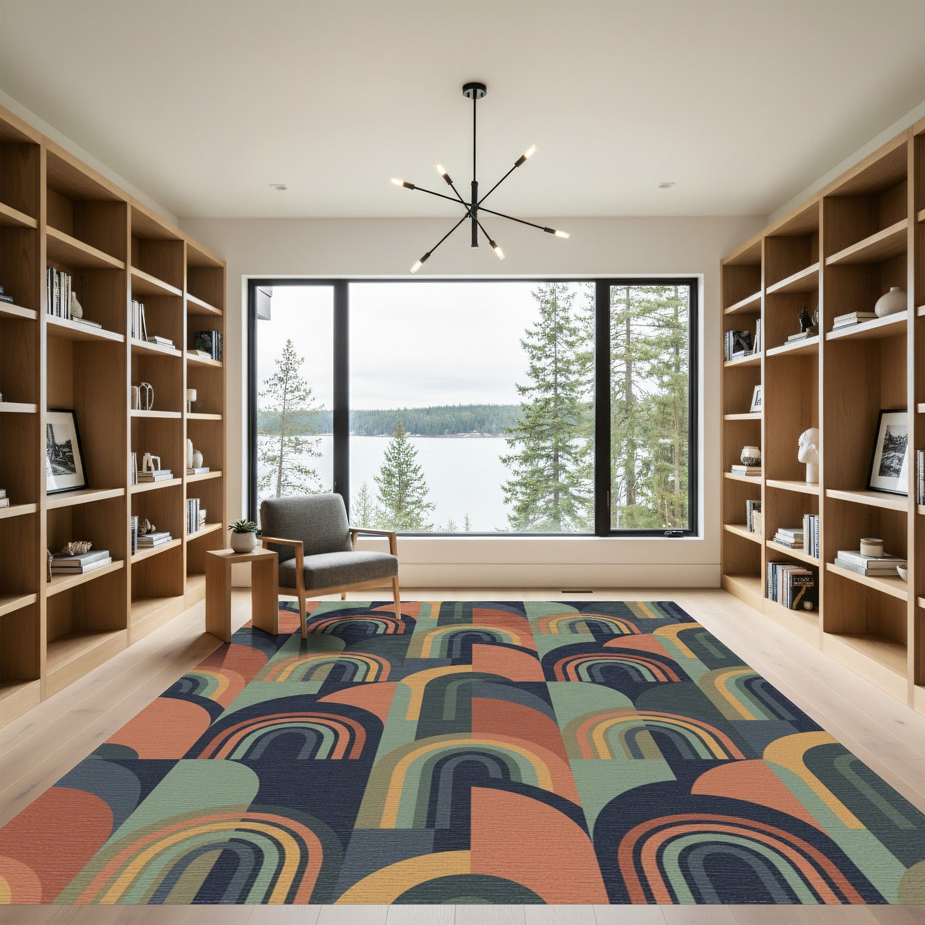 Retro Rainbow Arch Geometric Rug