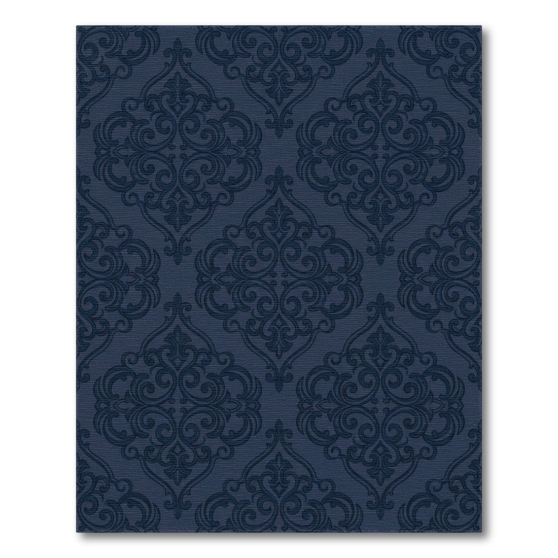 Flatwoven High Traffic Area Rug, Rich Navy Blue Damask Scroll Rug, Non Slip, Stain Resistant, Washable Area Rugs for Living Room, Bedroom Overview:
