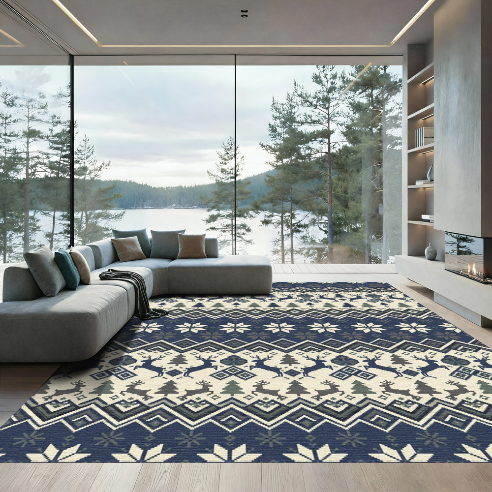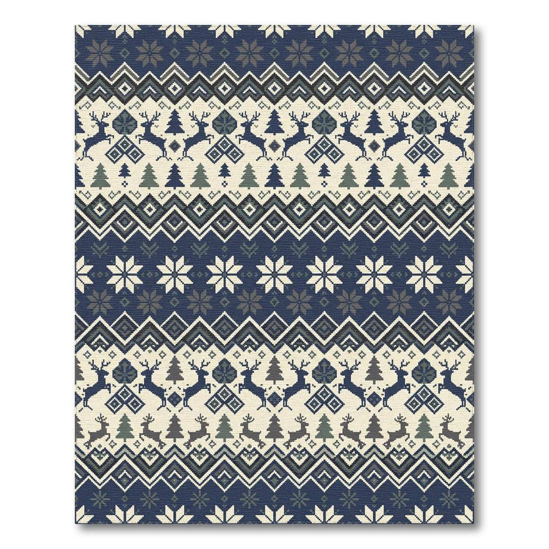 Nordic Reindeer Snowflake Geometric Stripes Rug