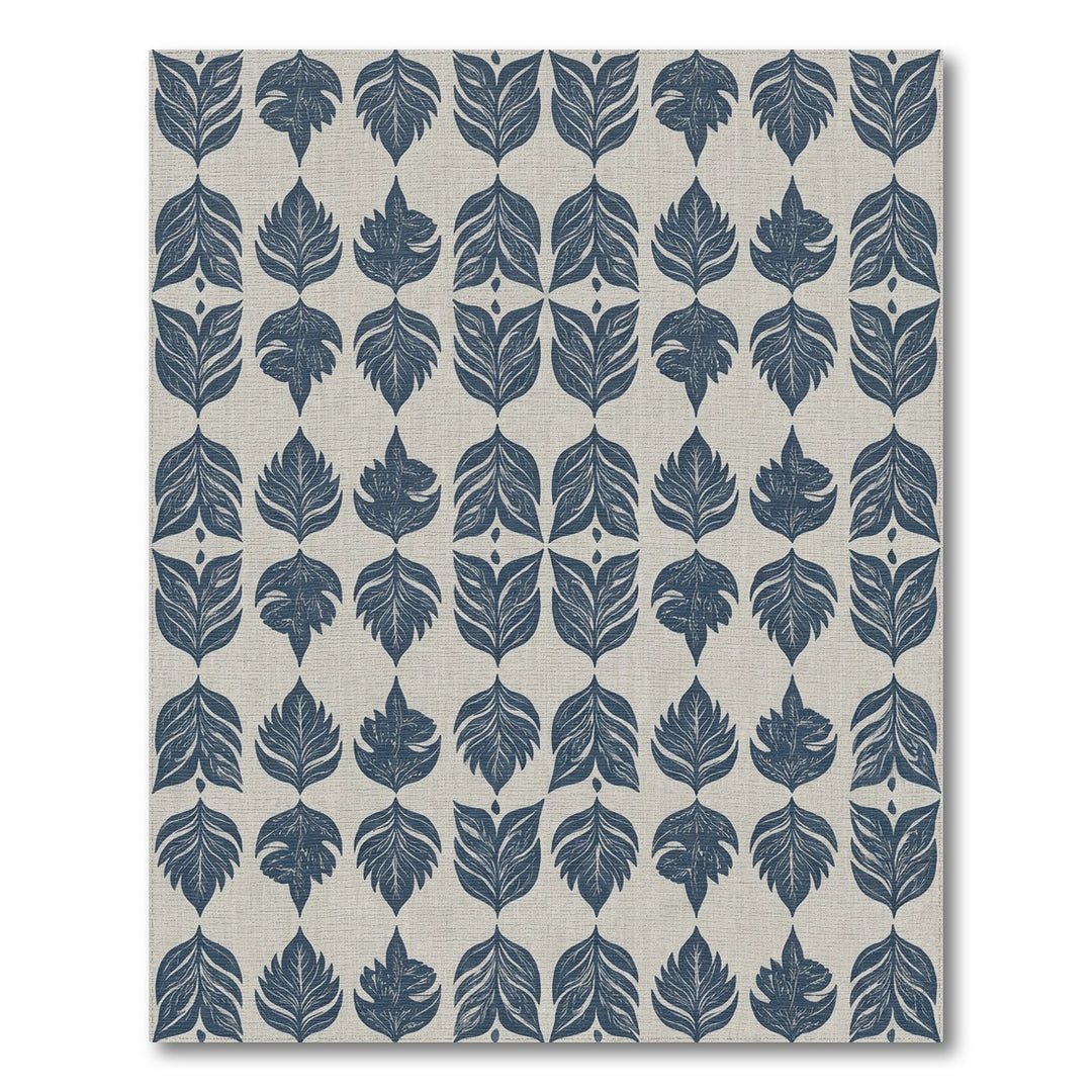 Navy Blue Leafy Imprint Repeat Rug