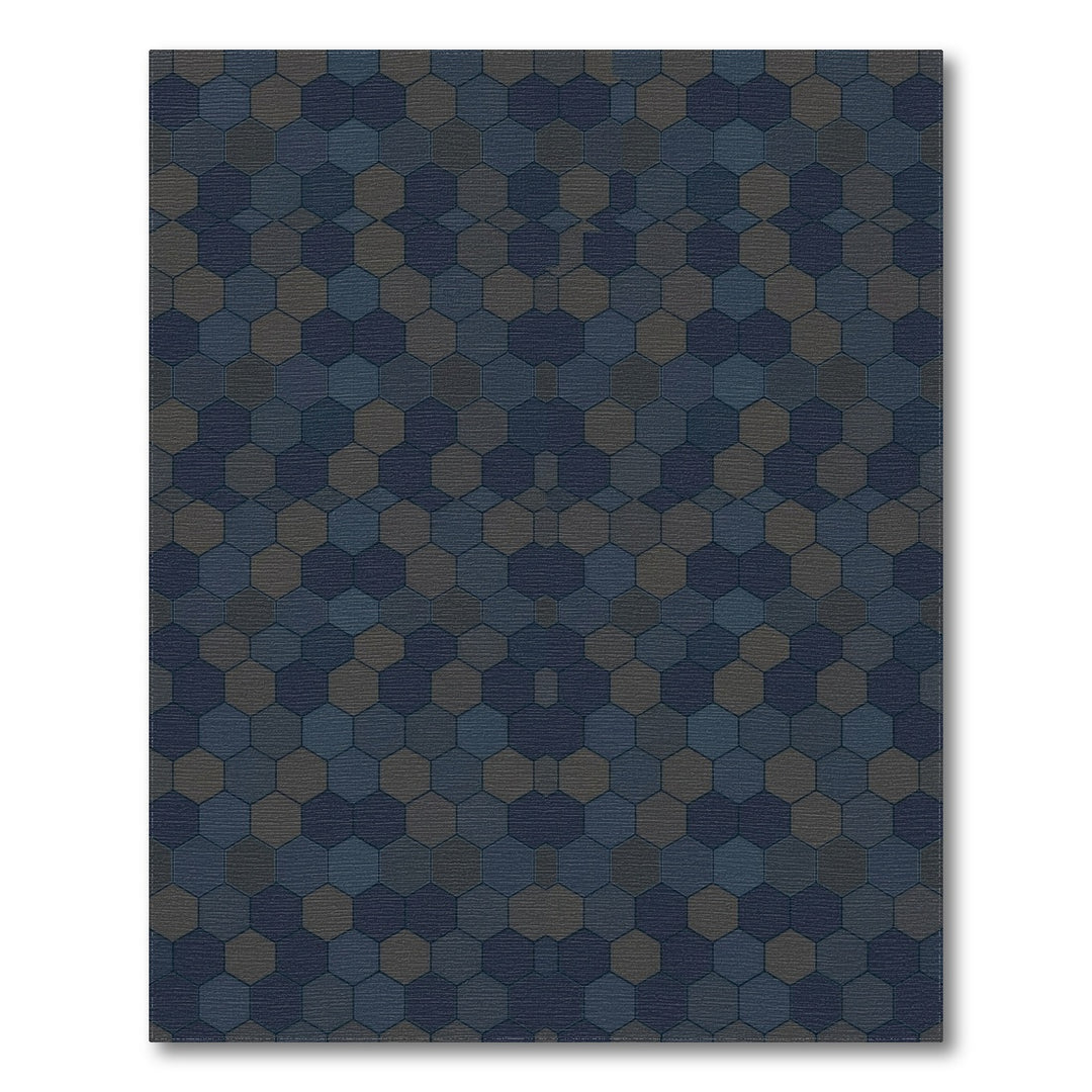 Dark Blue Hexagonal Geometric Arrangement Rug