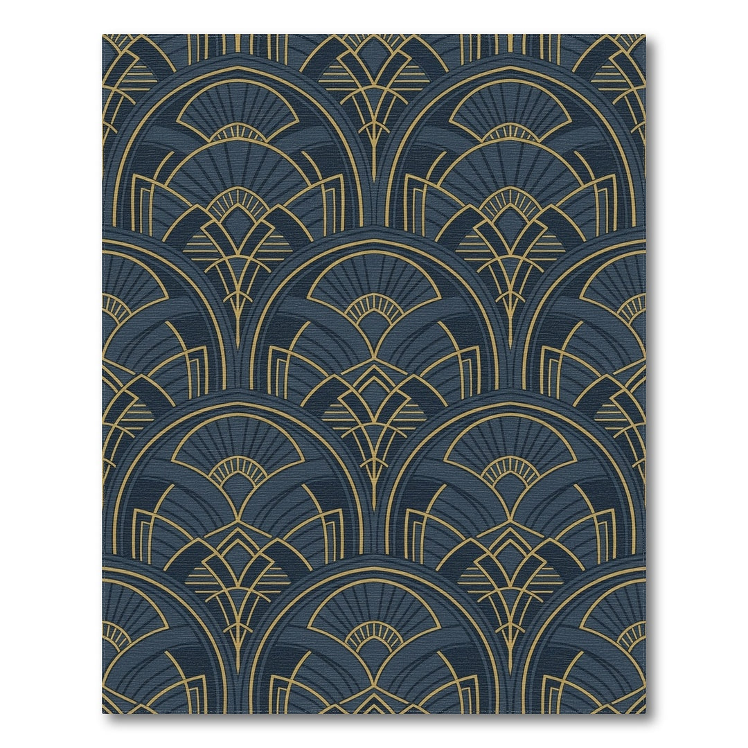 Navy Gold Art Deco Fan Rug