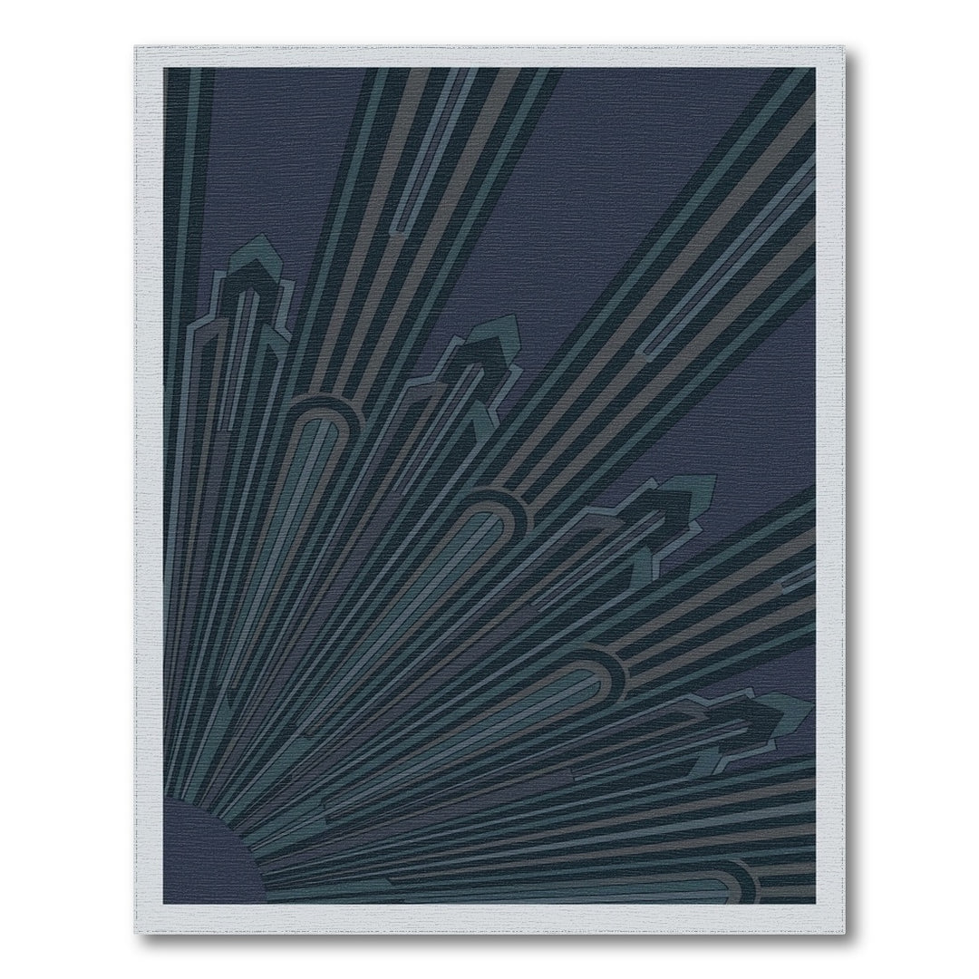 Art Deco Navy Sunburst Rays Rug