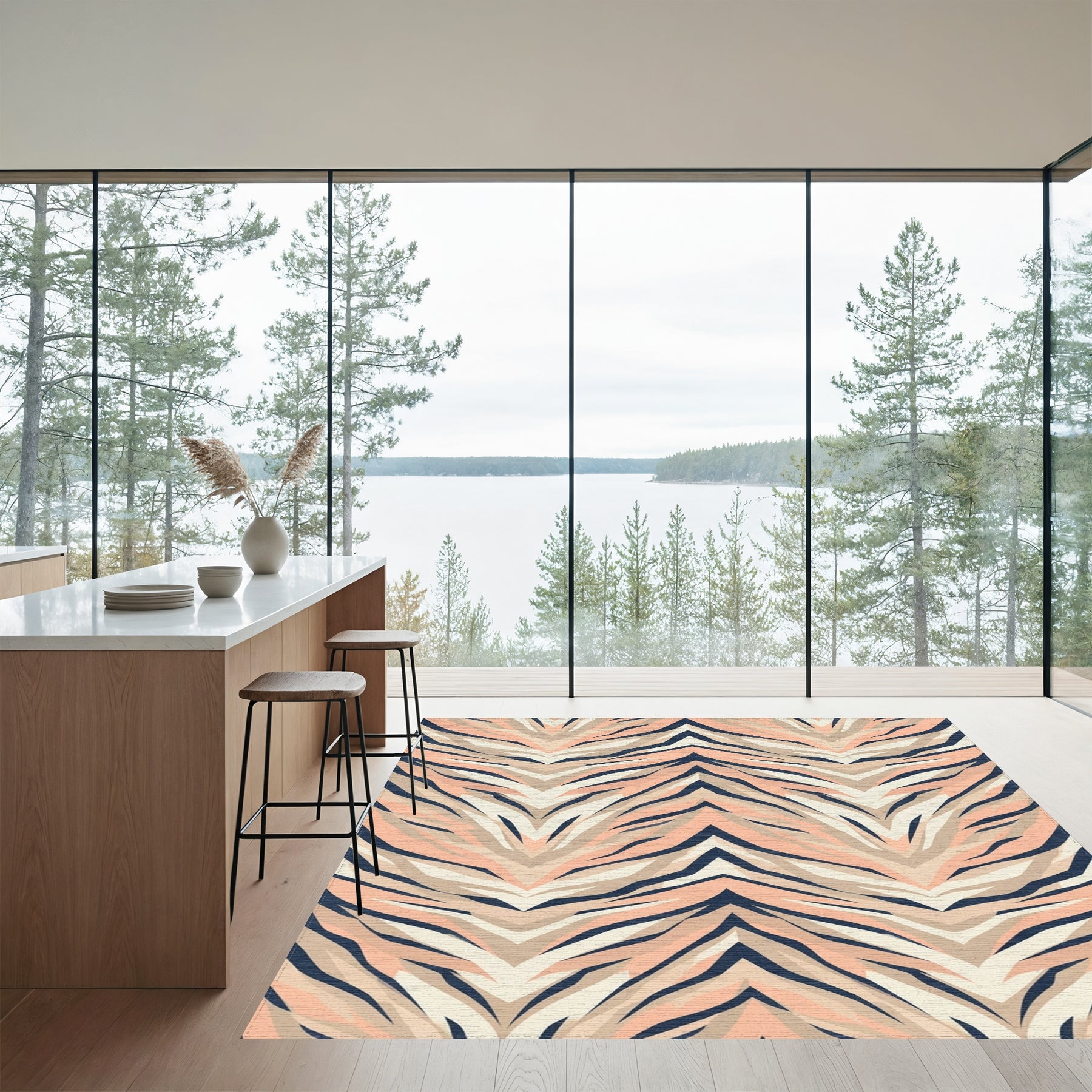 Flatwoven High Traffic Area Rug, Blush Tan Tiger Stripe Chevron Rug, Non Slip, Stain Resistant, Washable Area Rugs for Living Room, Bedroom Overview: