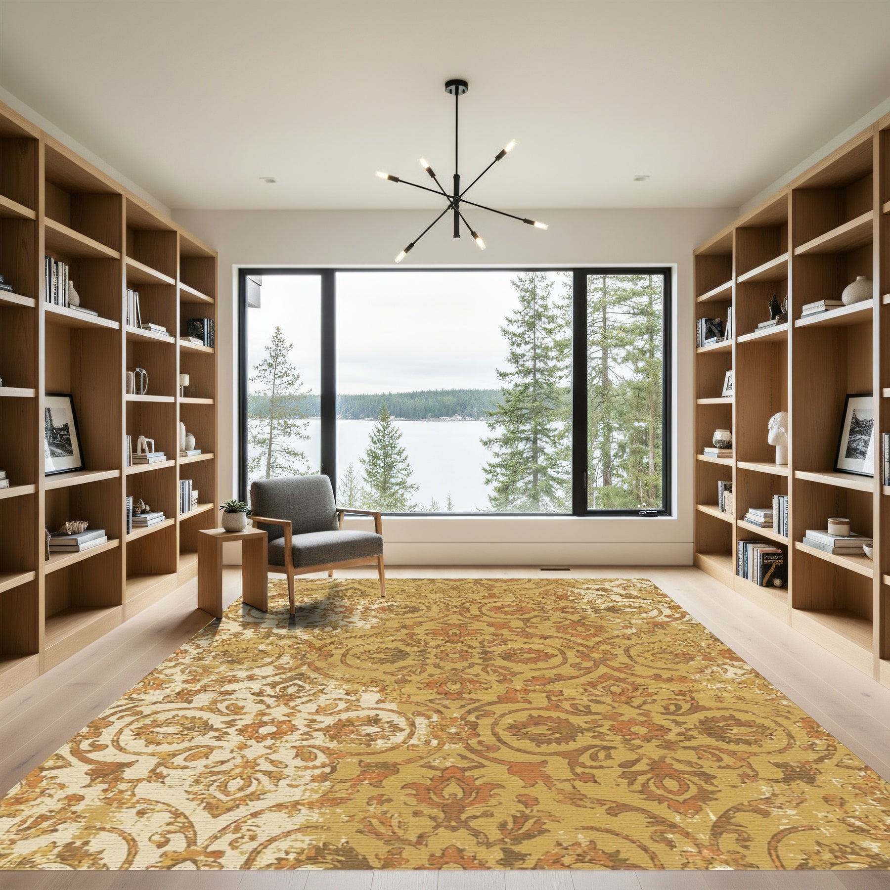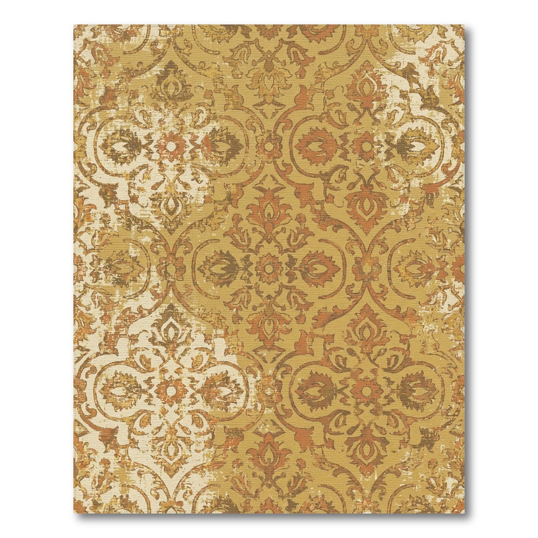 Flatwoven High Traffic Area Rug, Golden Amber Distressed Floral Damask Rug, Non Slip, Stain Resistant, Washable Area Rugs for Living Room, Bedroom Overview: