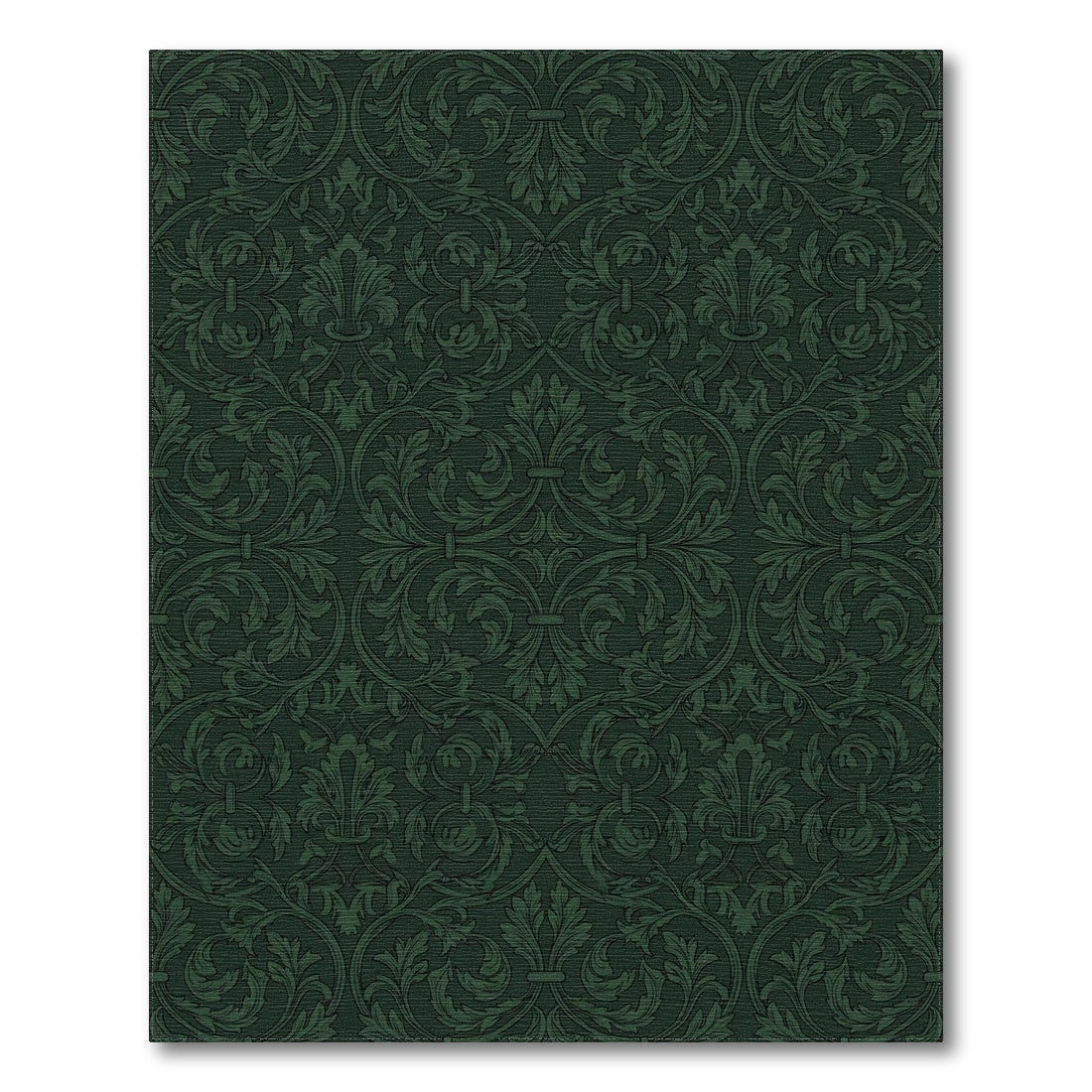 Flatwoven High Traffic Area Rug, Rich Forest Green Damask Scroll Rug, Non Slip, Stain Resistant, Washable Area Rugs for Living Room, Bedroom Overview: