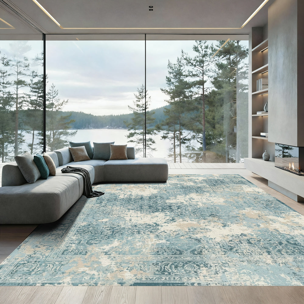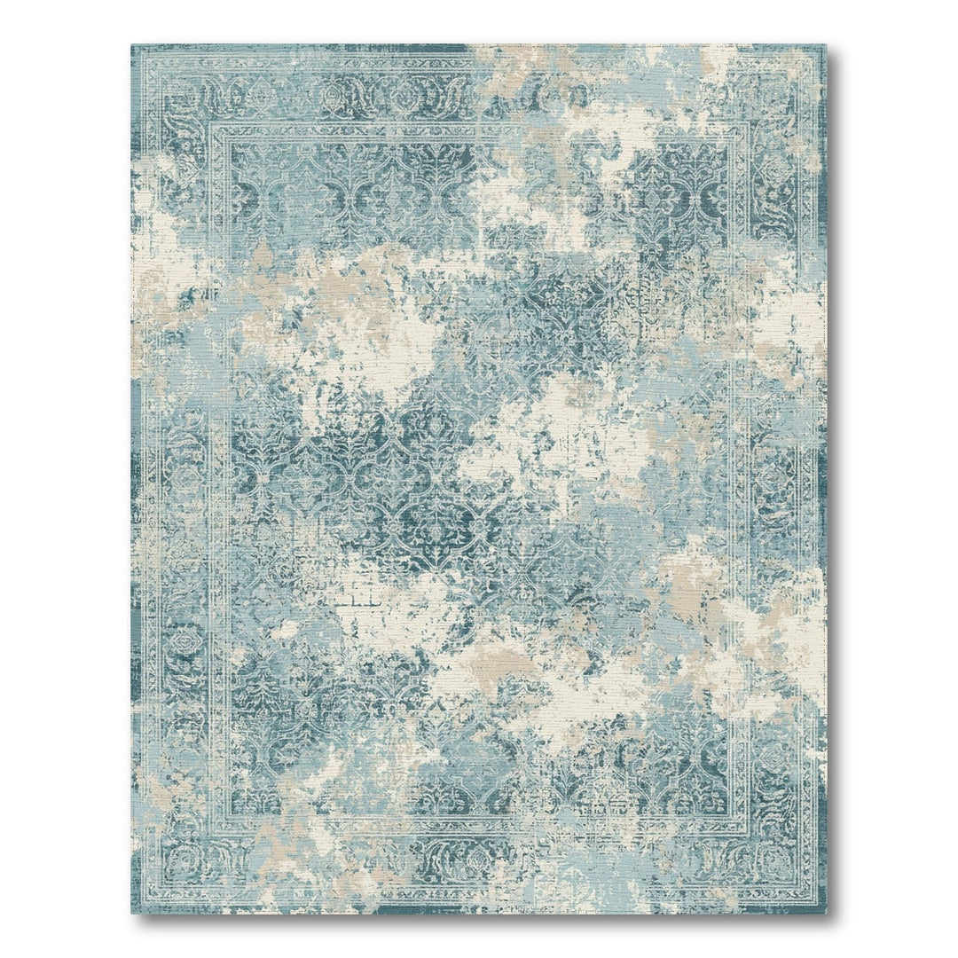 Vintage Teal Damask Accented Rug