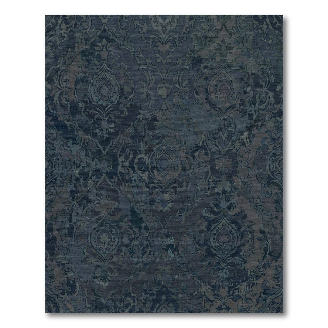 Distressed Midnight Floral Damask Rug