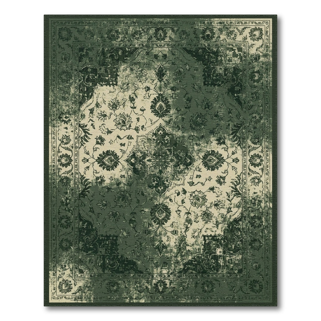 Vintage Green Floral Medallion Rug