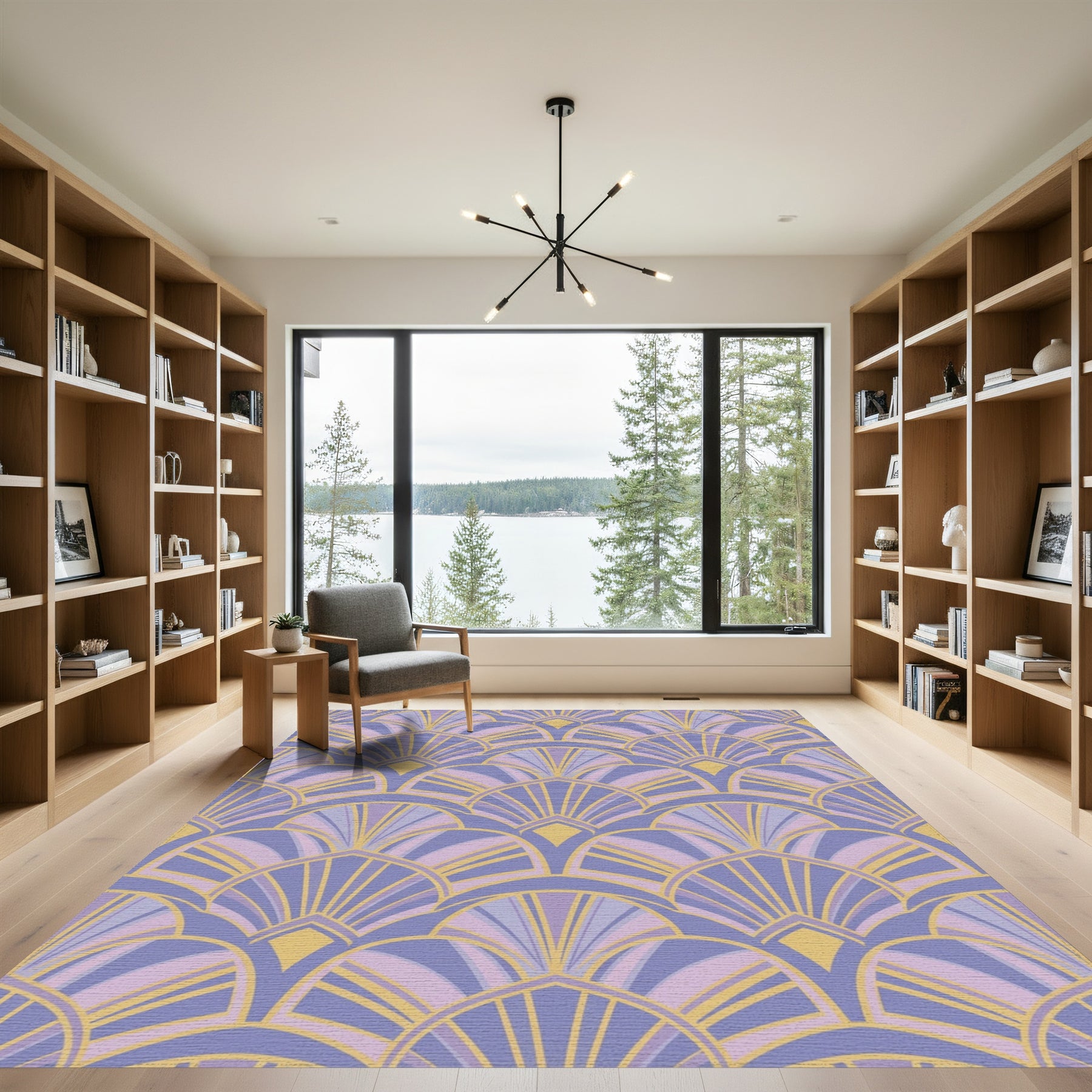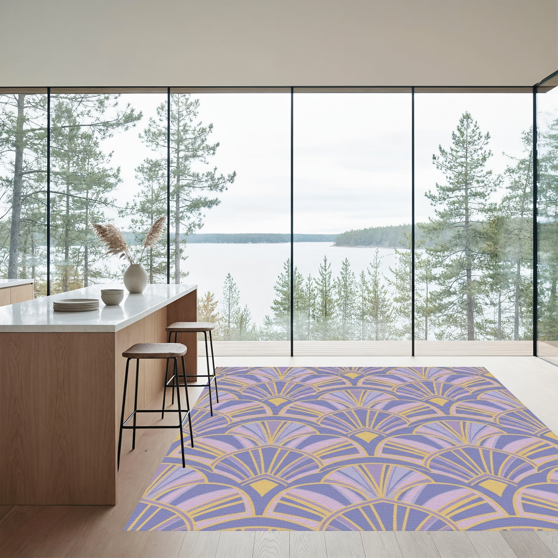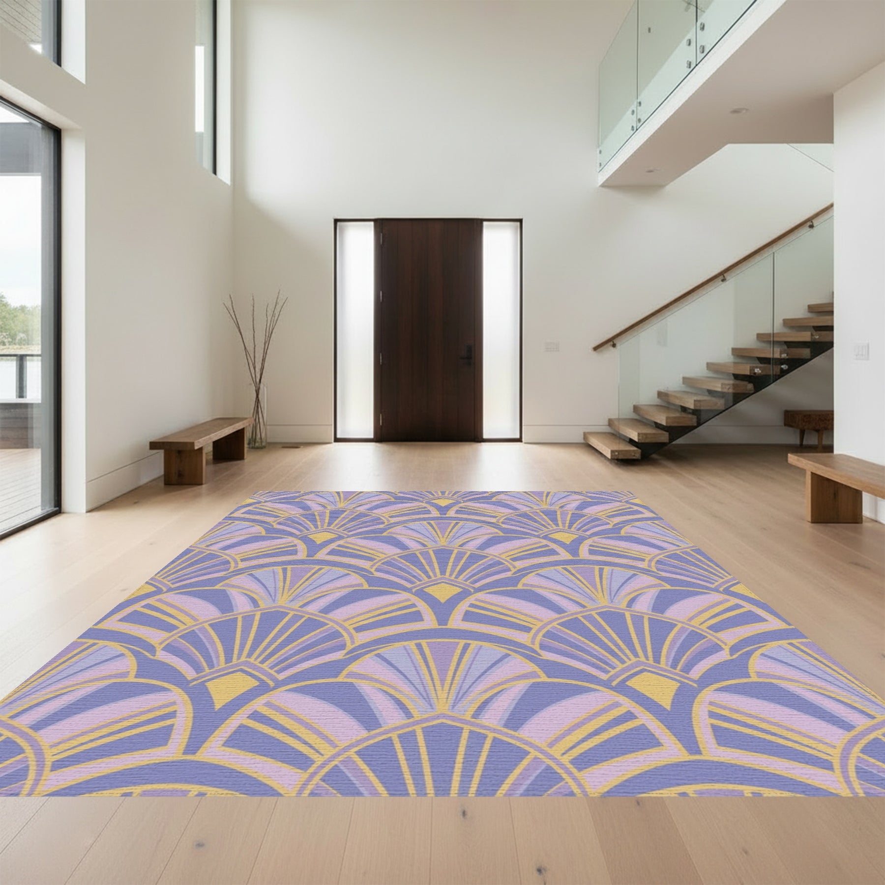 Art Deco Lilac Fan Shell Arrangement Rug