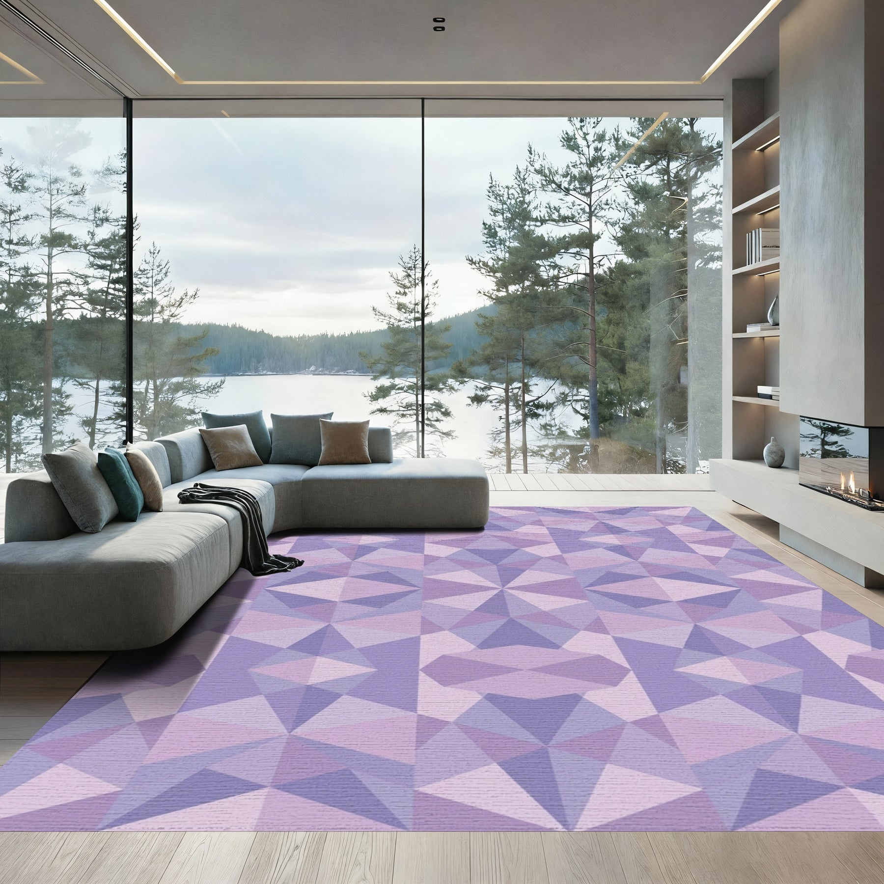 Flatwoven High Traffic Area Rug, Lavender Geometric Crystal Tessellation Rug, Non Slip, Stain Resistant, Washable Area Rugs for Living Room, Bedroom Overview: