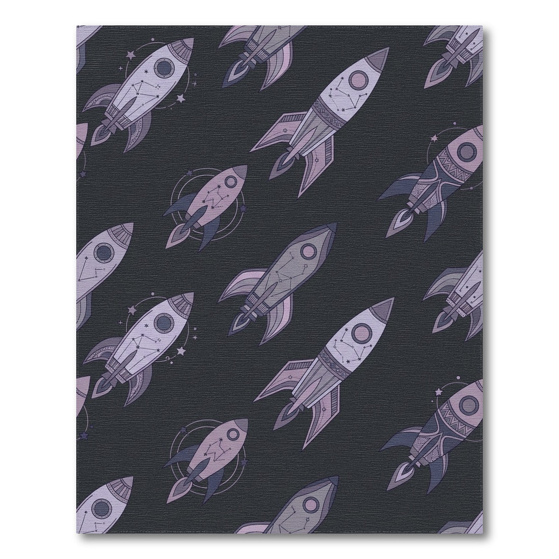 Flatwoven High Traffic Area Rug, Lavender Space Rockets Constellation Scatter Rug, Non Slip, Stain Resistant, Washable Area Rugs for Living Room, Bedroom Overview: