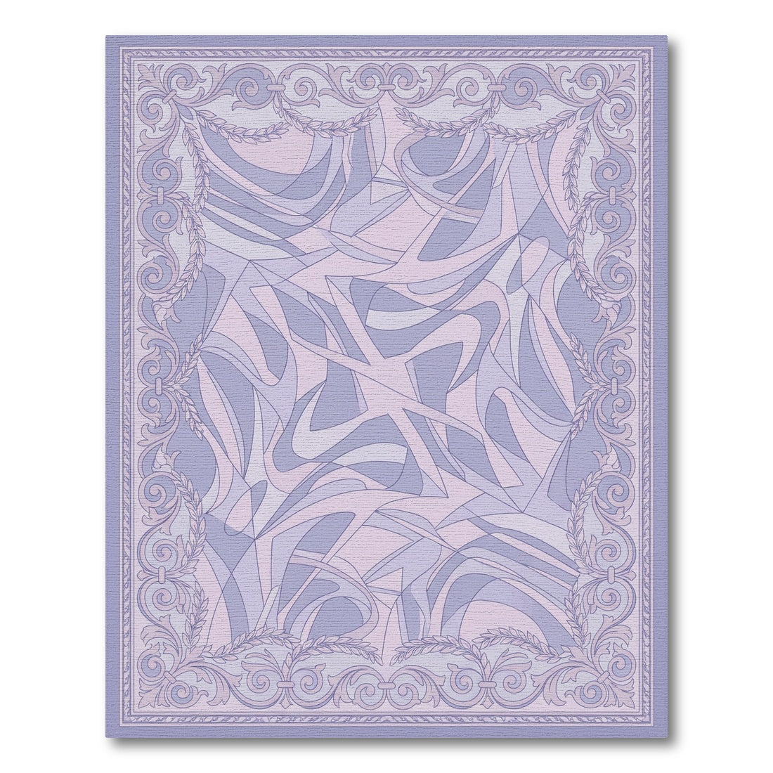 Flatwoven High Traffic Area Rug, Lavender Swirl Abstract Scrolled Frame Rug, Non Slip, Stain Resistant, Washable Area Rugs for Living Room, Bedroom Overview: