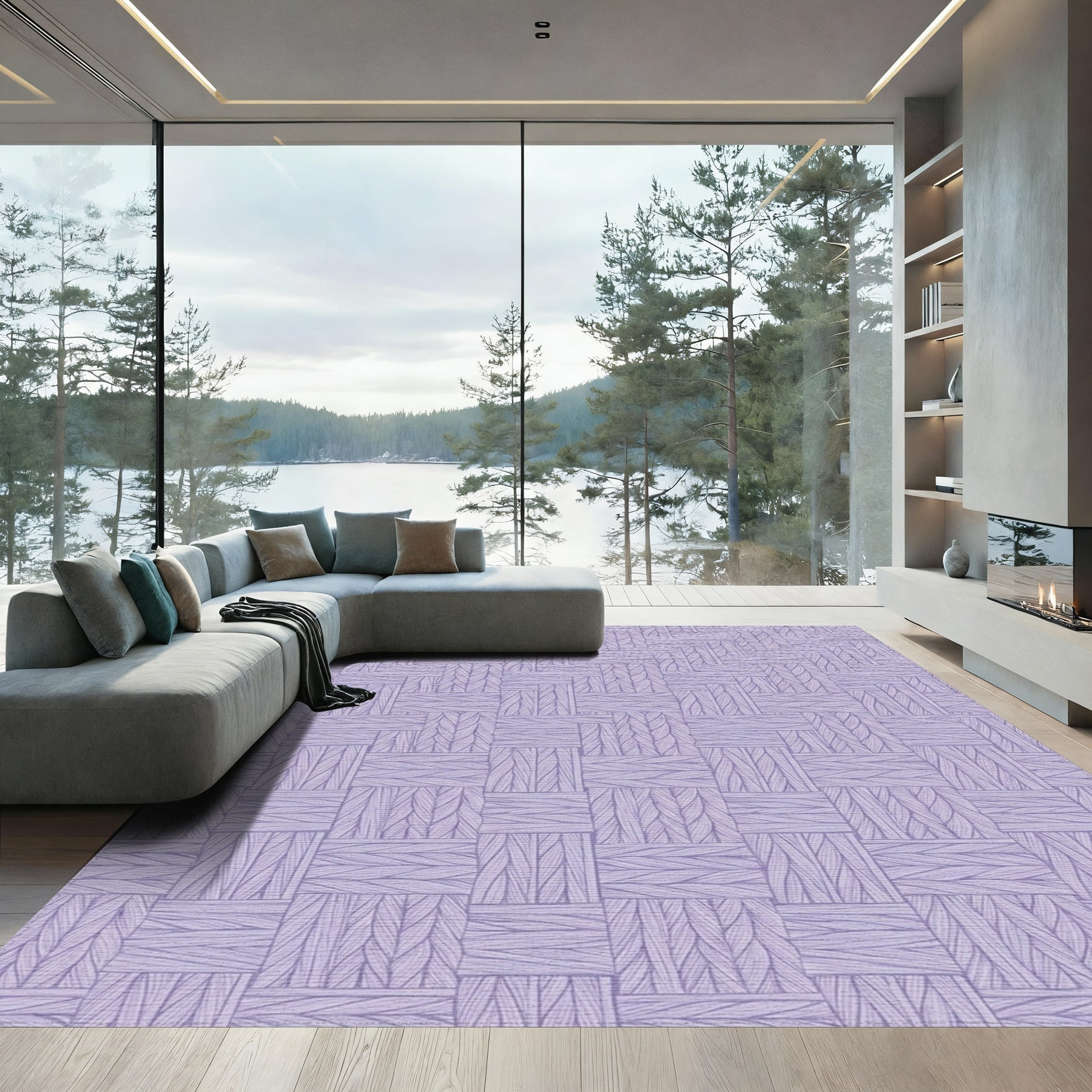 Flatwoven High Traffic Area Rug, Lavender Woven Herringbone Geometric Rug, Non Slip, Stain Resistant, Washable Area Rugs for Living Room, Bedroom Overview: