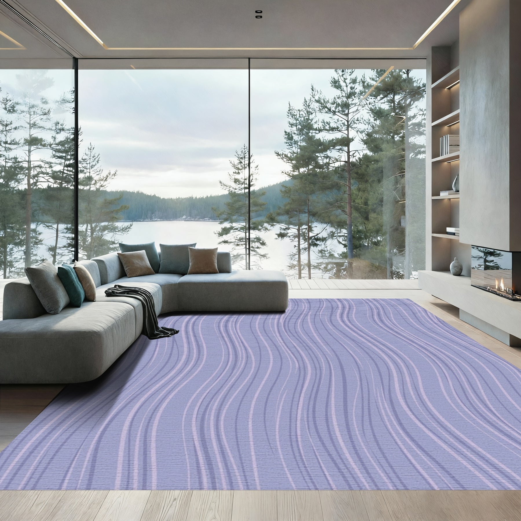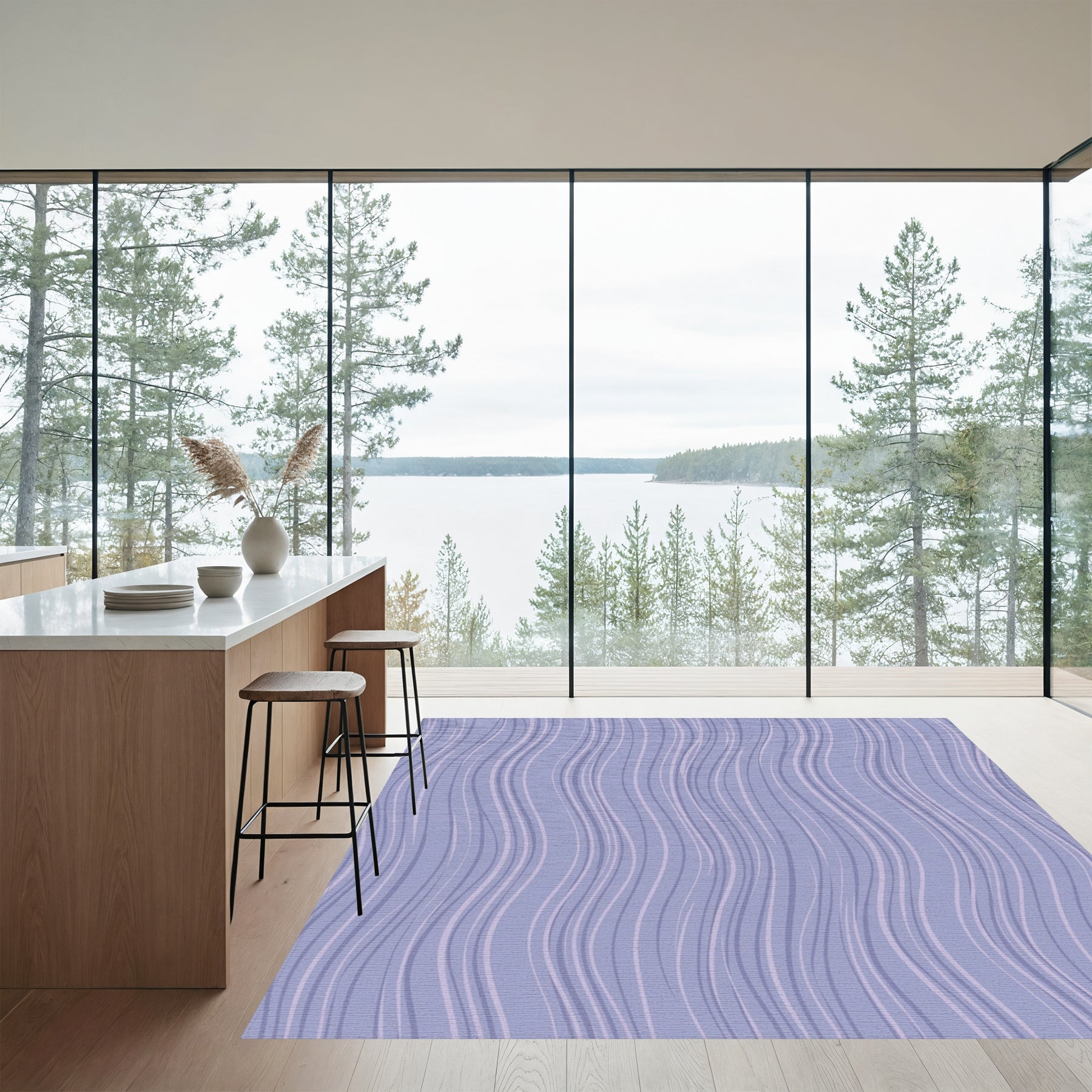 Flatwoven High Traffic Area Rug, Light Blue Wavy Stripe Rug, Non Slip, Stain Resistant, Washable Area Rugs for Living Room, Bedroom Overview: