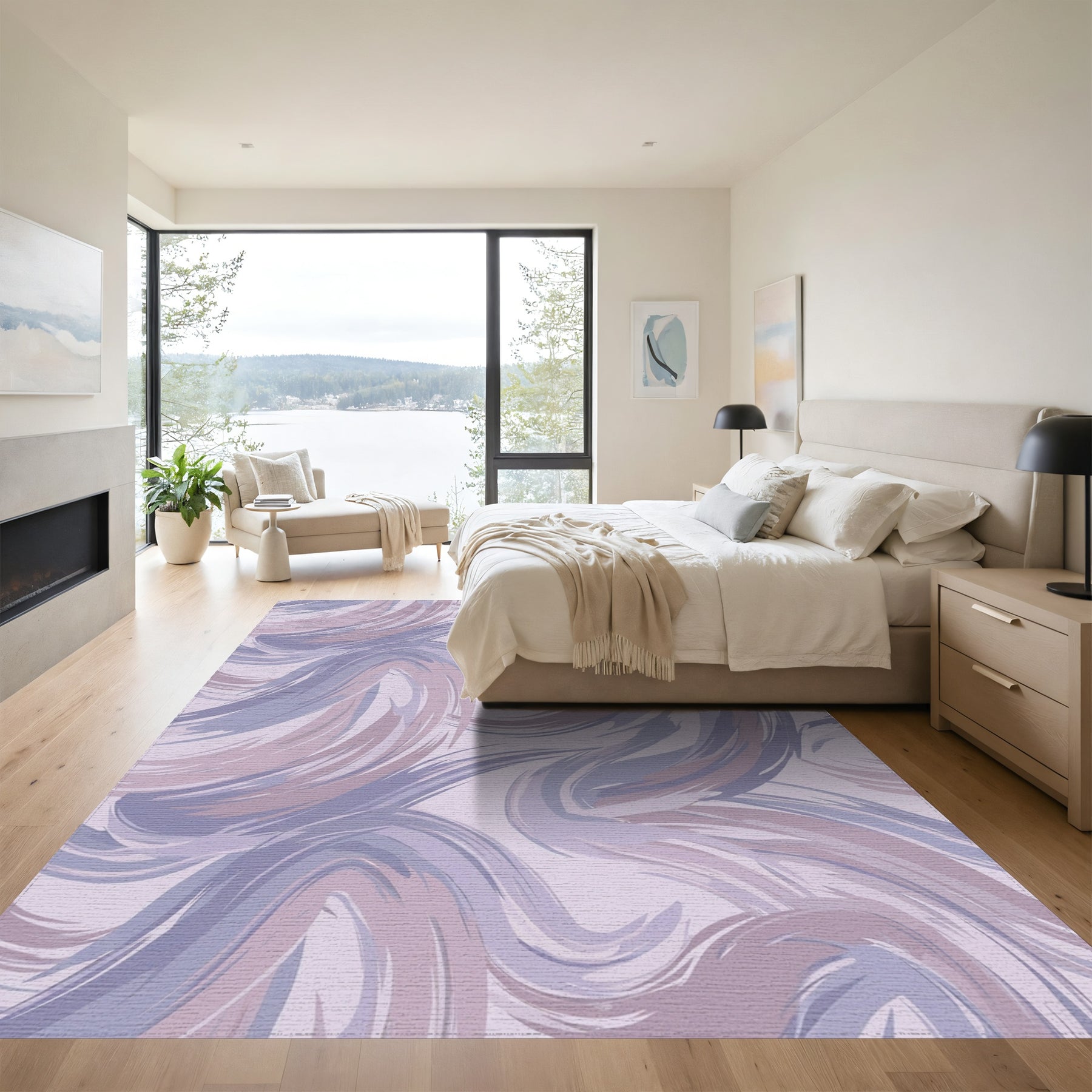 Flatwoven High Traffic Area Rug, Soft Lavender Brushstroke Swirl Rug, Non Slip, Stain Resistant, Washable Area Rugs for Living Room, Bedroom Overview: