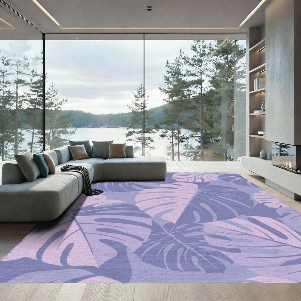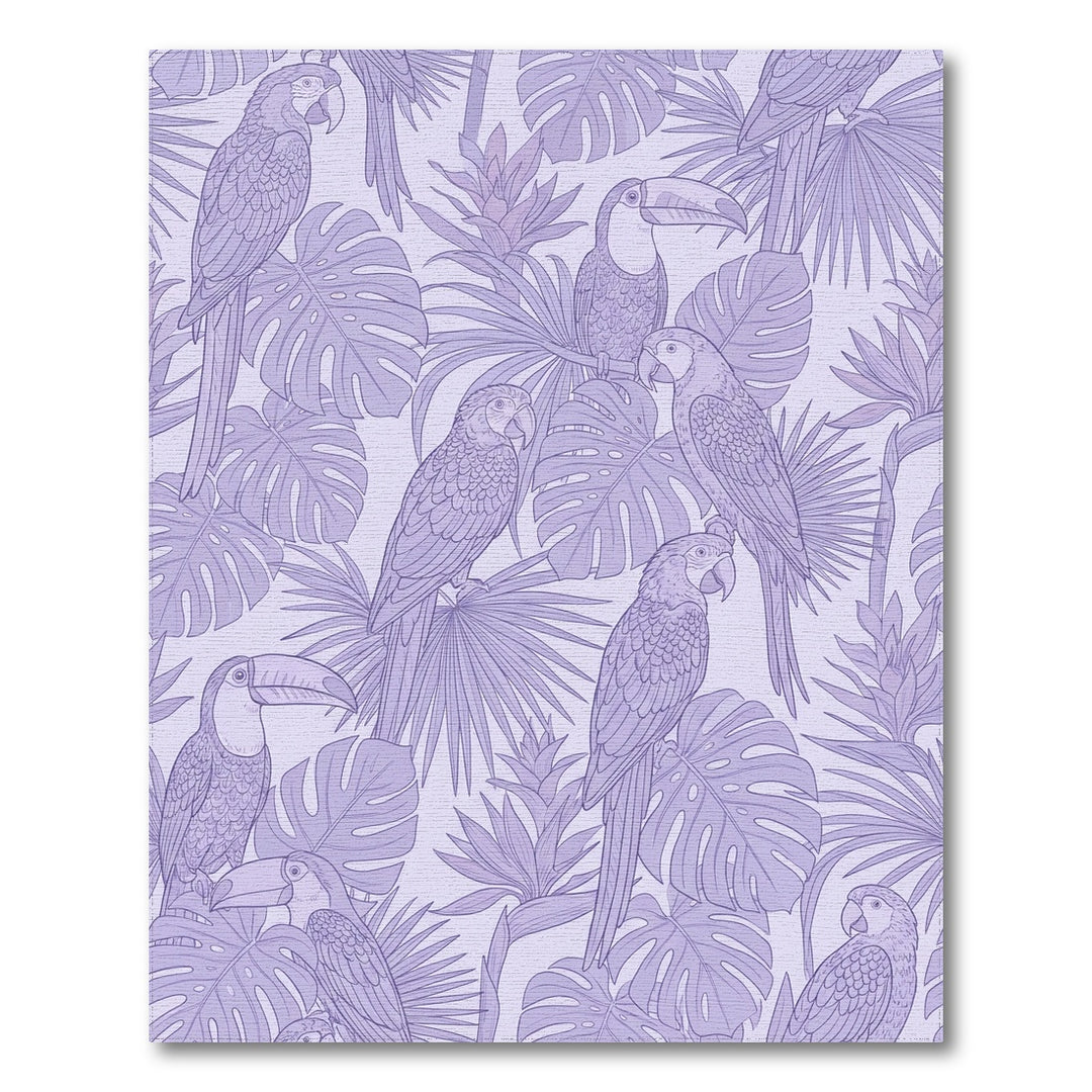 Periwinkle Macaws Toucans Tropical Leaves Rug