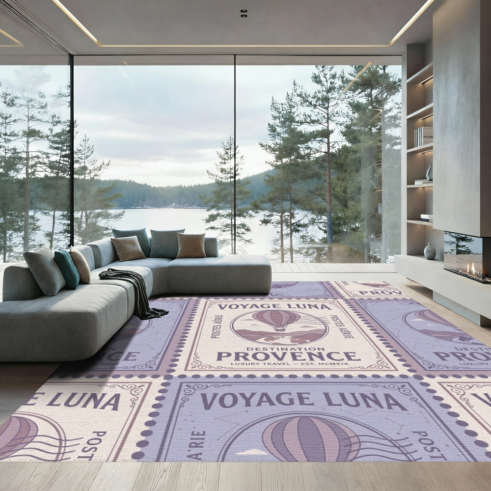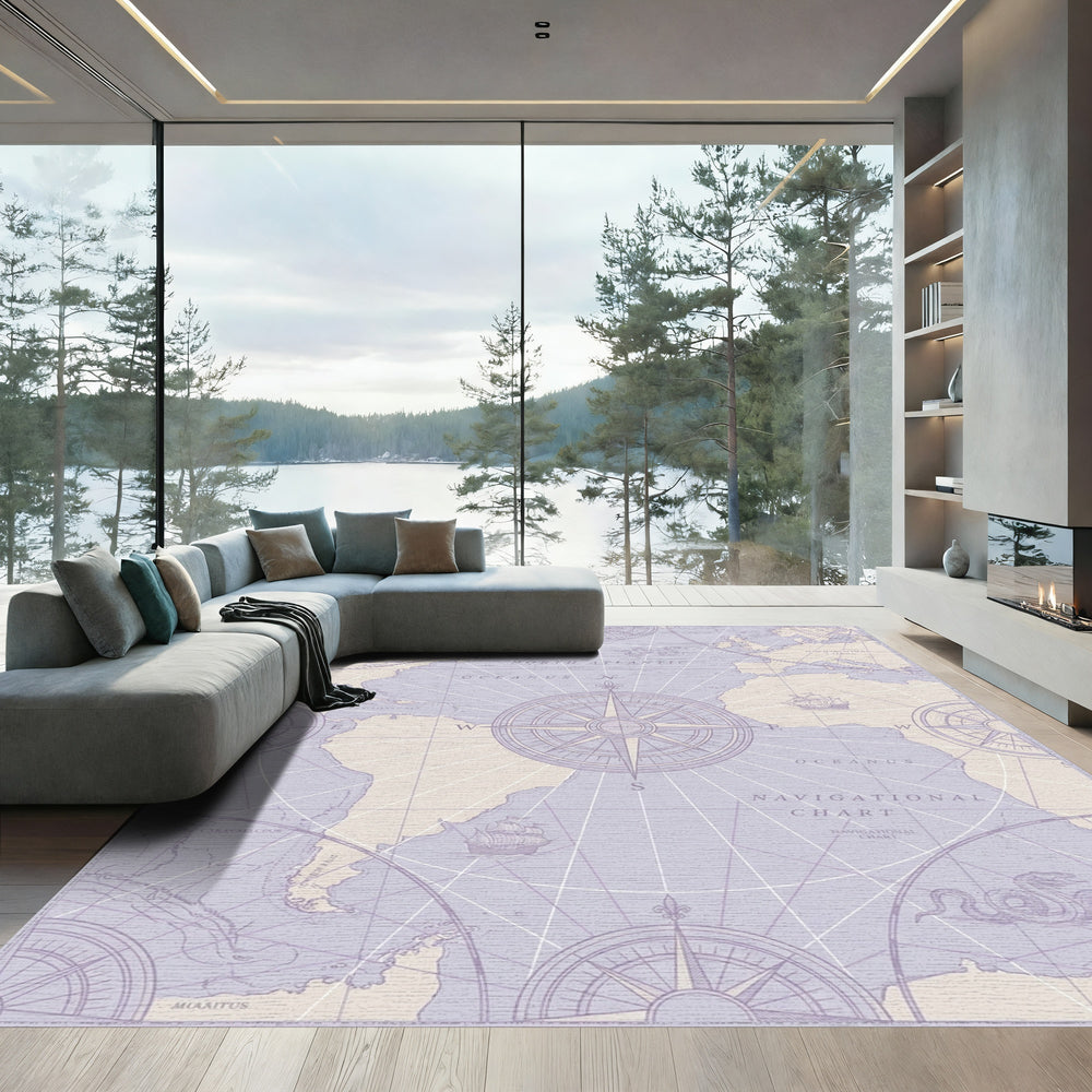 Purple Nautical Lighthouse Sailboat Anchor Compass Rug