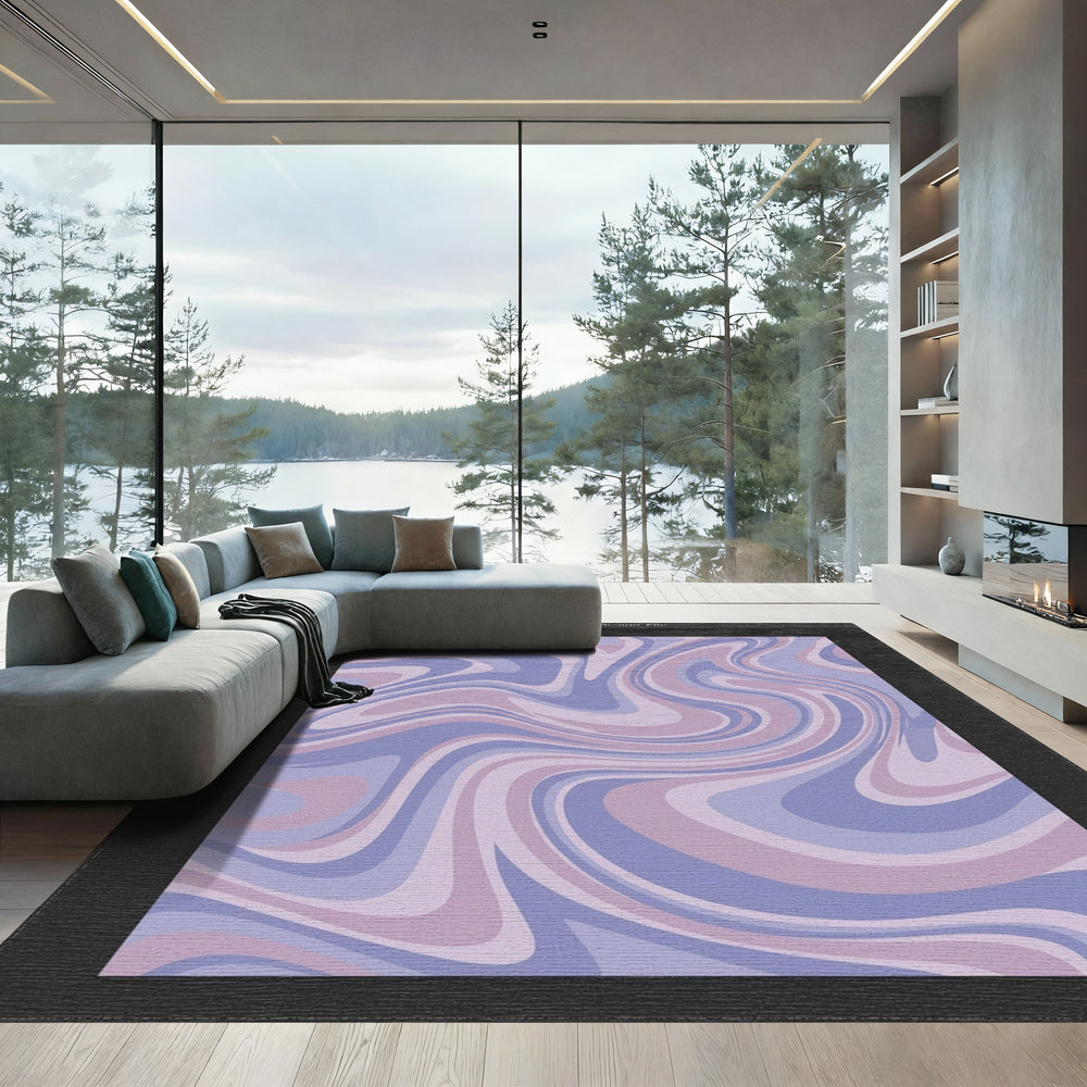 Lavender Swirl Abstract Scrolled Frame Rug