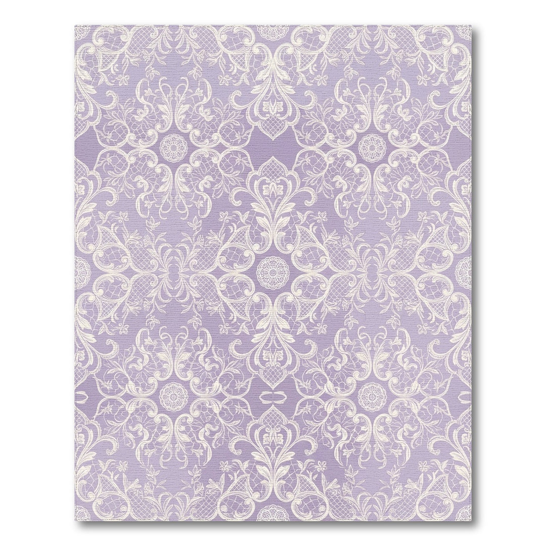 Lavender Floral Scroll Damask Rug